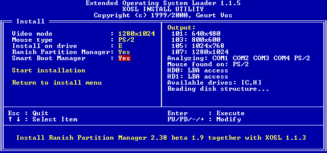 Lastly you will have to choose whether or not to install Smart Boot Manager to provide support for (indirect) CD-ROM booting from XOSL. When installed, you will be able to directly boot Smart Boot Manager from XOSL, which has the ability to boot from IDE CD-ROM drives.