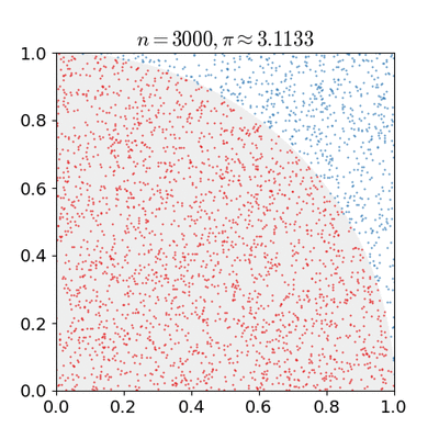 Uporaba metode Monte Carlo pri določanju približne vrednosti števila π.
