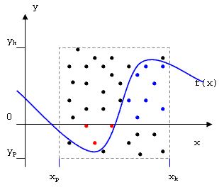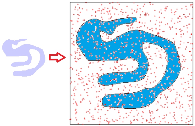 Slika x zapletene oblike, katere povrsino Ax lahko določimo z Monte Carlo
