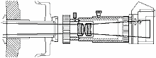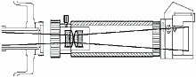 | Variable-Projection Tele-Extender: The Meade Variable-Projection Tele-Extender allows for a continuous range of projection magnifications during eyepiece-projection photography; the additional projection range is of particular value in high-resolution planetary photography. The machined sliding-cell assembly can be fixed at any position along its length and is held in position with 2 thumbscrews. Attachment of the unit to the telescope is identical to that of the Basic Tele-Extender, above. |