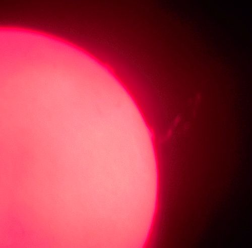 Na začetku smo skozi moj H-alfa teleskopek z "operacijske mize" (lani pripeljala z Matjažem