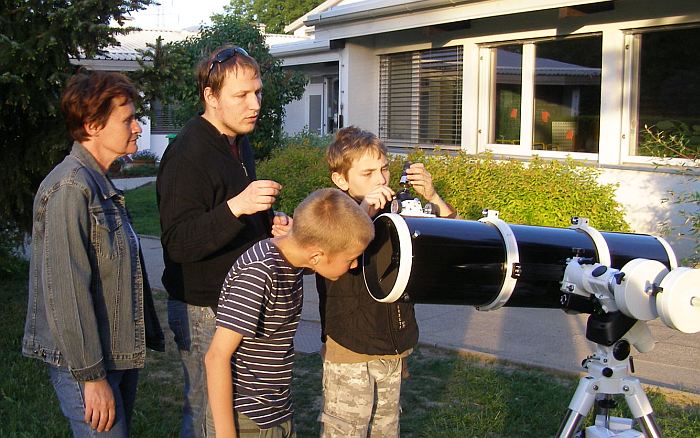 na vprašanje, koliko jih je že opazovalo skozi teleskop, sta roke dvignila samo dva.