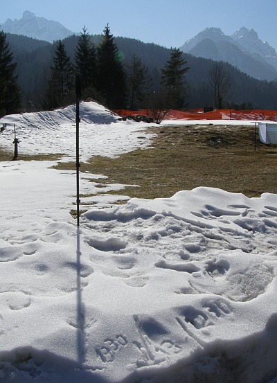 "gromozanskih" kep snega iz terase šole na igrišče, kjer so tako nastajali