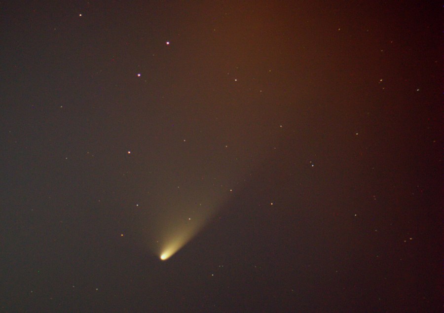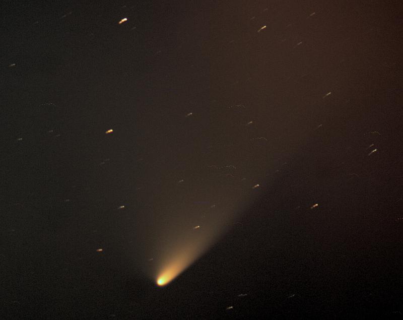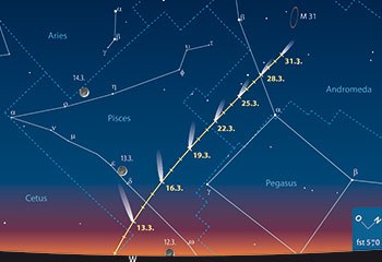 Pojasnilo: Še vedno nedotaknjen se je 21. novembra komet ISON (C/2012 S1) prikazal na levi strani polja te animirane slike kamere HI-1 na satelitu STEREO-A. Kamera je poleg ISON-a ujela tudi periodični komet Encke, Merkur in Zemljo. Sonce, ki se nahaja na desni strani in je vir valujočega sončevega vetra, je izrezano iz slike. S perspektive satelita STEREO v interplanetarnem prostoru je planet Zemlja pravzaprav najbolj oddaljen objekt v tej skupini. Merkur je najbližji. Oba planeta sta tako svetla, da ustvarjata ostre vertikalne črte na detektorju kamere. Pri obeh kometih jasno opazimo izrazita repa. ISON se nahaja bližje kameri in bo nadaljeval s hitrejšo potjo preko polja. Kameri na satelitih STEREO in SOHO bosta lahko sledili kometu ISON pri njegovem bližnjem srečanju s Soncem 28. novembra tudi v primeru, da bo opazovanje ISON-a z Zemlje v svetli zarji bolj zahtevno.