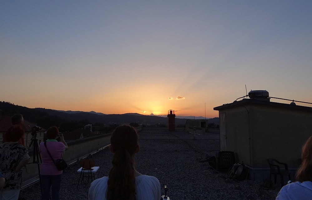 Fotonatečaj ima naslov Moja Ljubljana, kar pomeni, da morajo prispele fotografije vsebovati bolj ali manj urbano motiviko prestolnice. Sprejemljive so seveda tudi mestne vedute, ki jih v ozadju krasijo okoliški hribi in oddaljene planine. Pri tokratni nagrajeni fotografiji, katere avtor je Zorko Vičar, ne gre za mestno podobo, temveč za motiv, ki je bil posnet s terase ljubljanske šentviške gimnazije. Na fotografiji je predstavljen oddaljeni Triglav v času žarečega sončnega zahoda, in to v trenutku, ko je šentviško nebo preletela ptica, kar daje motivu poetičen čar. Triglav kot najvišja gora v deželi Slovencem veliko pomeni in pomeni nacionalni simbol. Triglav je slovanski bog in ljudje so gori nadeli ime »beli triglavski očak«. Znamenito pesem o Triglavu je leta 1894 napisal duhovnik Matija Zemljič iz Gornje Radgone, leta 1896 pa jo je uglasbil duhovnik Jakob Aljaž iz Dovjega na Gorenjskem. Gre za velika domoljuba, ki sta v veličastni kamniti gori videla simbol lepote, trdnosti, zavetja, samobitnosti in ponosa, kar naj bi Slovence povezovalo in nacionalno utrjevalo. V novejšem času je nastala domoljubna popevka Ptica vrh Triglava, katere avtorji so bili Jure Robežnik, Dušan Velkavrh in Tomaž Habe, doživeto pa jo prepeva Braco Koren. Silhueta triglave gore v obliki cikcak linije je navdihovala številne vizualne ustvarjalce, ki so bolj ali manj posrečeno kreirali grbe in simbole za različno rabo. Tudi partizanska kapa je v tej obliki. Zorko Vičar je poslal več variant motiva, prvi predstavlja že opisano fotografijo s ptico, drugi je posnet v prefinjenem modro-sivem tonu, tretji pa prikazuje očišče fotografiranja, prej omenjeno šentviško teraso z ograjo, za katero se dviguje hribovje s Triglavom v ozadju. Nagrajencu se je najbolj približala avtorica Katja Grm z imenitnim nočnim posnetkom pivovarne Union, sledi Tjaša Janovljak z odlično dokumentarno serijo motivov iz jazz predstave na Gornjem trgu in Mitja Kralj, ki je s pomočjo optičnega trika ustvaril šokanten motiv z naslovom Ljubljana se podira.