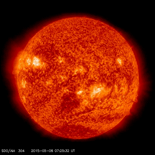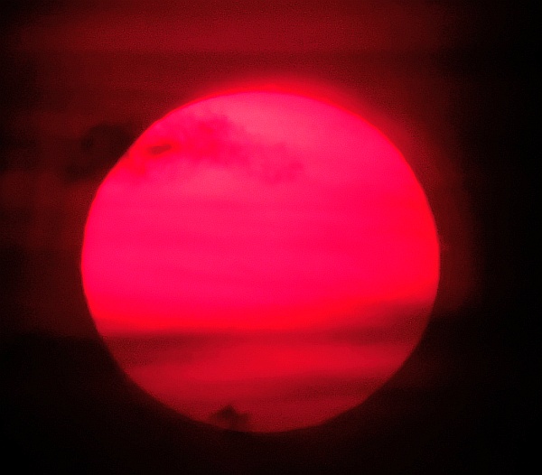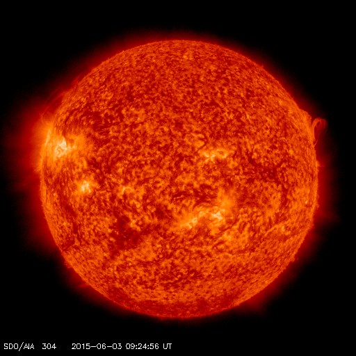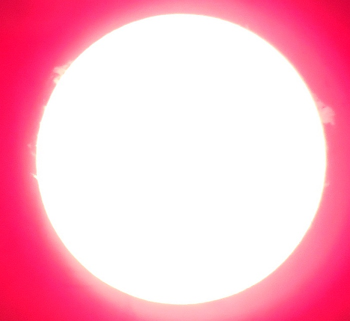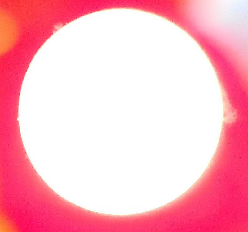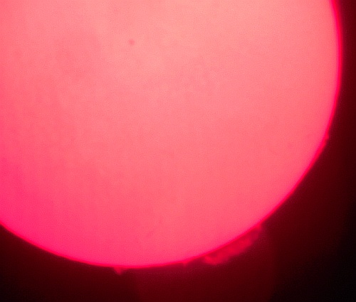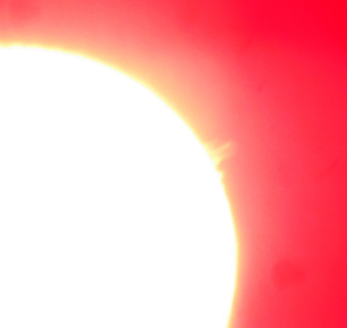 Redko lahko opazujemo Sonce v začetku zime, sploh okrog Božiča in novega leta. 25. decembra 2014 je bil viden prav imeniten prizor, izbruhi v vrsti (kot drevored) na levi pa še praznični ognjemet.