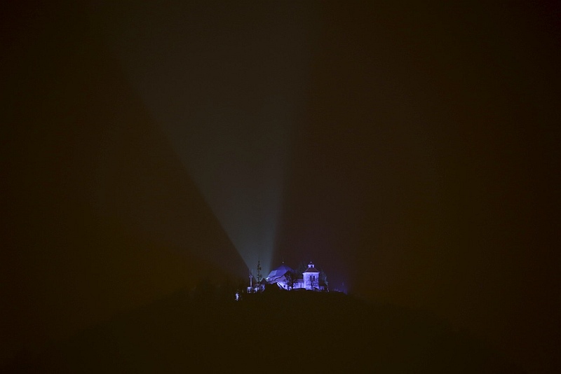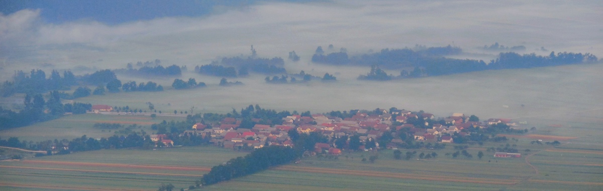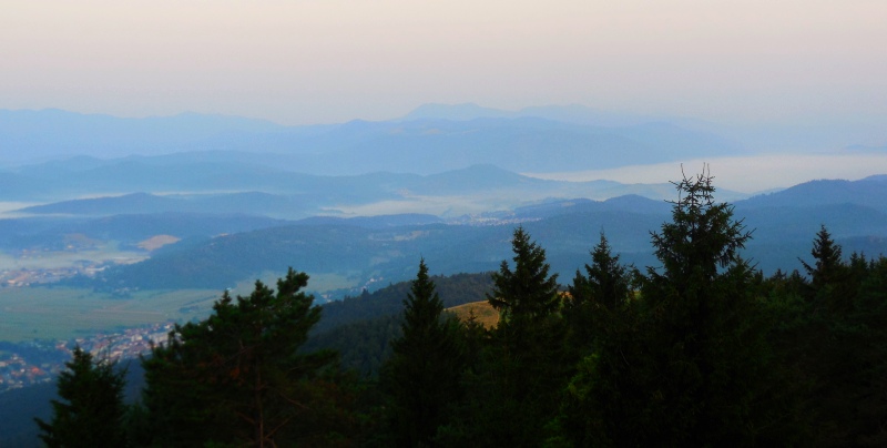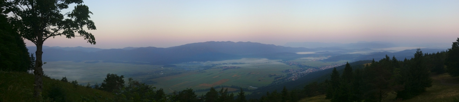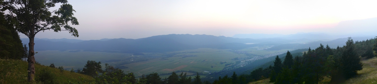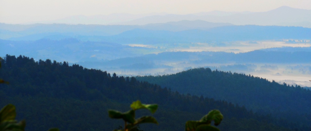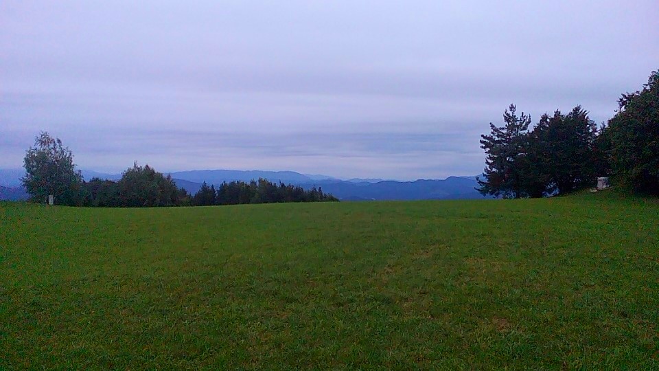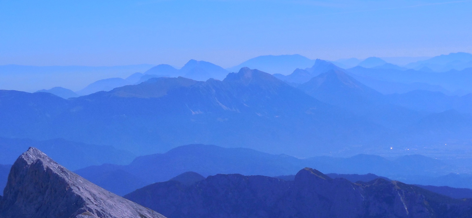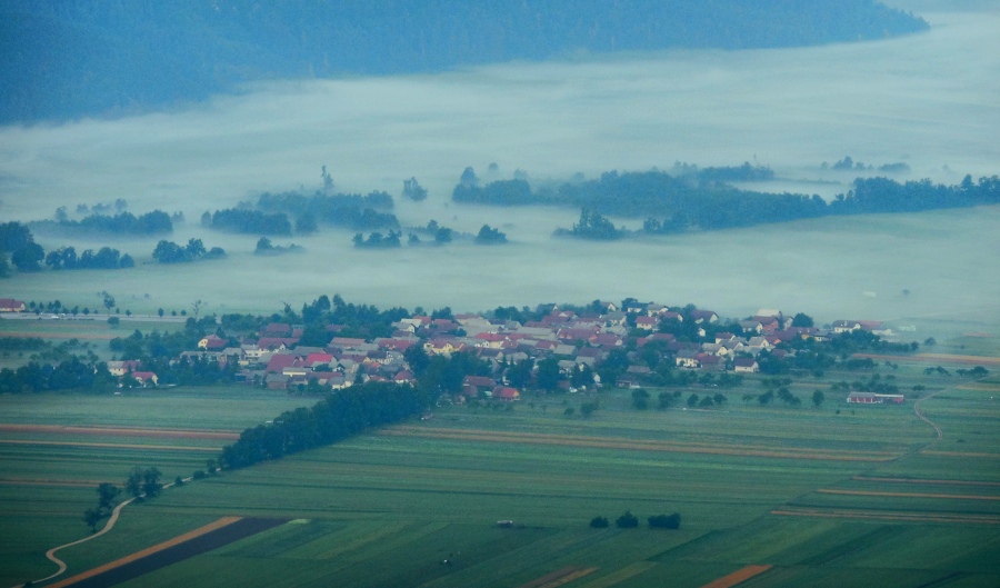 Pogled iz Malega Triglava proti Šmarni gori in Ljubljanski kotlini. Šentvid, kjer so izdelali in od koder so tudi ponesli Aljažev stolp na Triglav, se skriva desno od Šmarne gore v rahli meglici.