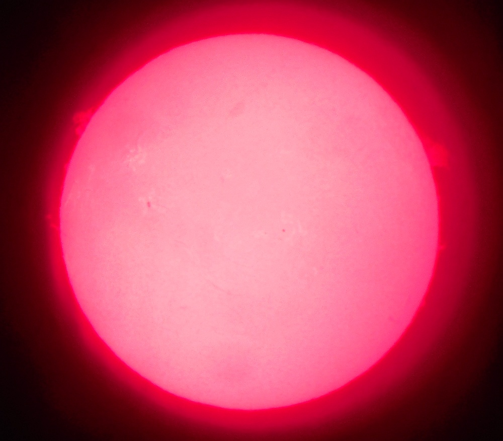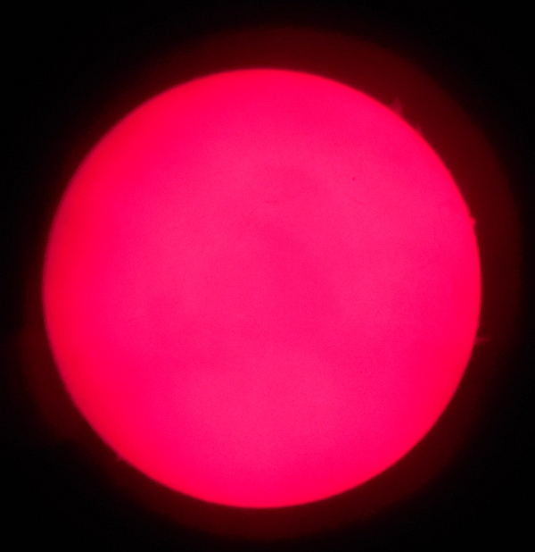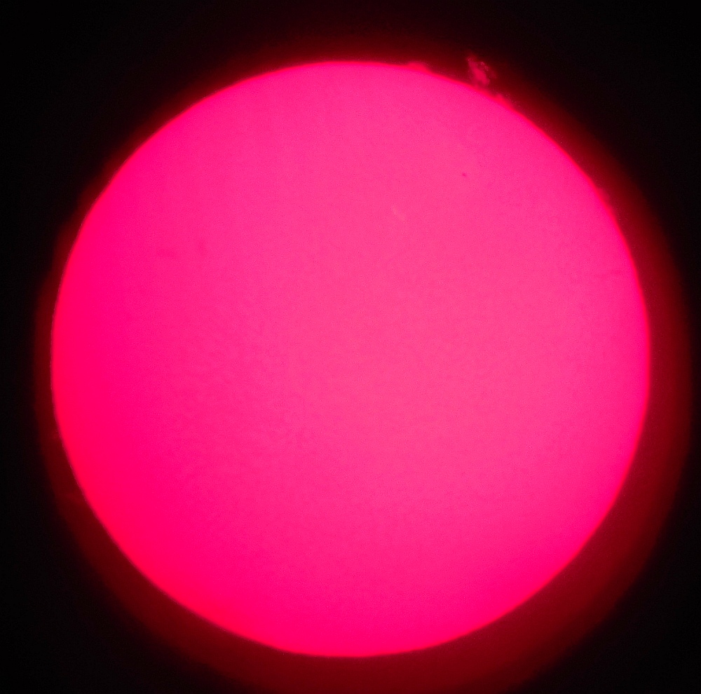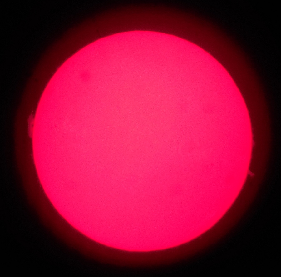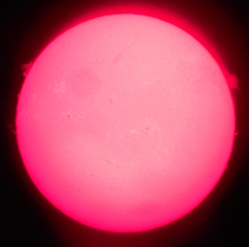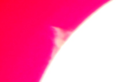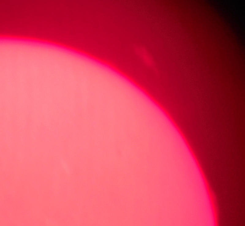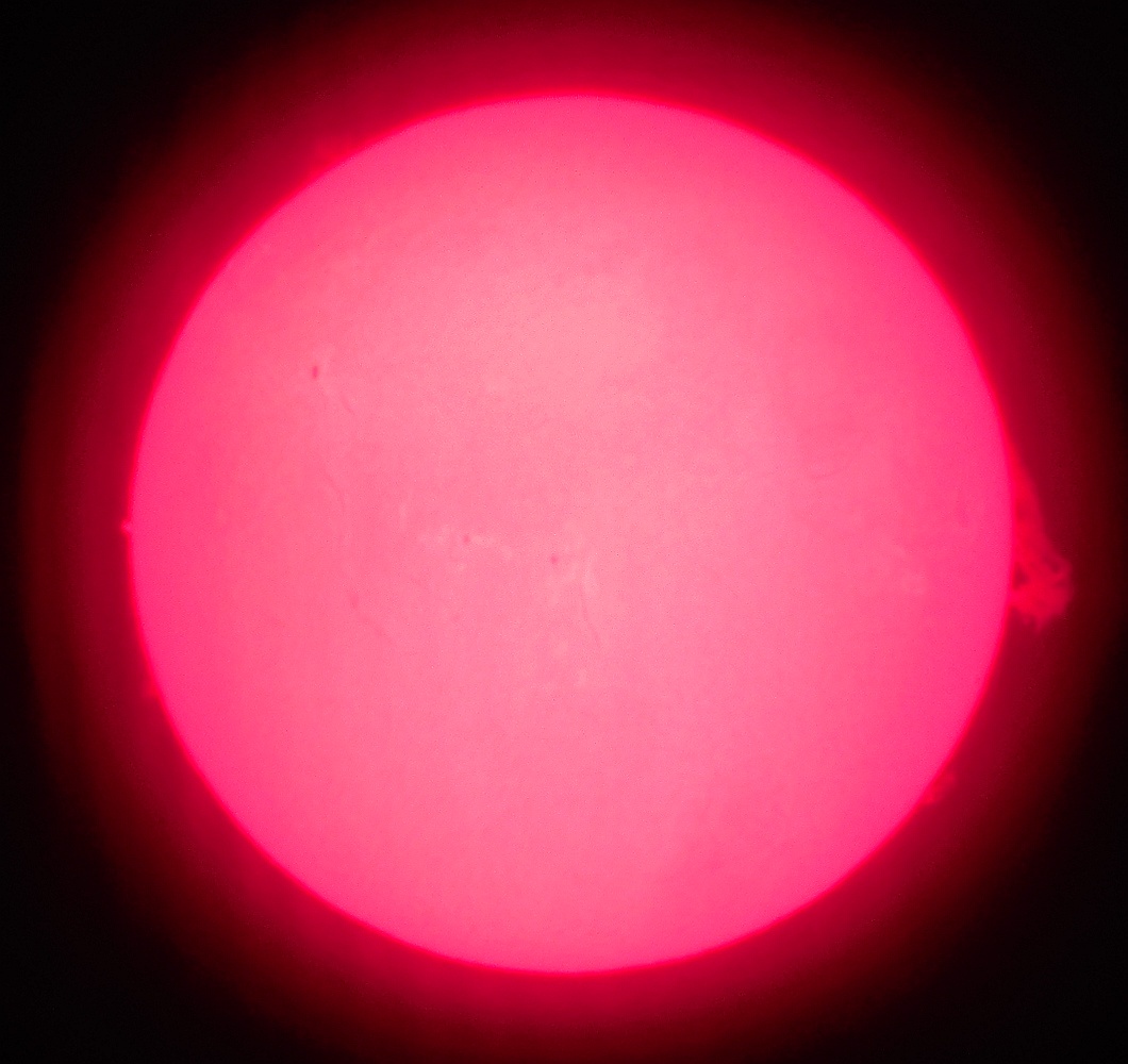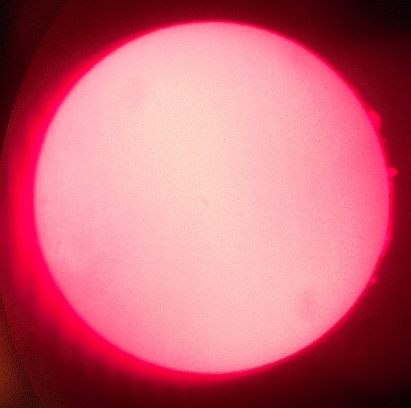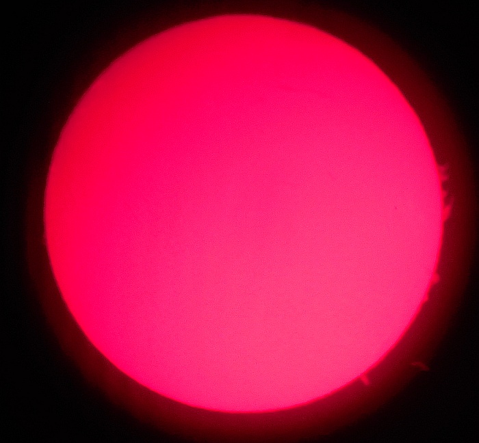 Za pokušino nekaj slik izjemne protuberance na robu Sonca - 17. sep. 2015. Posneto s H-alfa teleskopom Lunt 35 mm, zgolj z žepnim nizkocenovnim kompaktnim digitalnim fotoaparatom Nikon COOLPIX S6400 skozi okular.