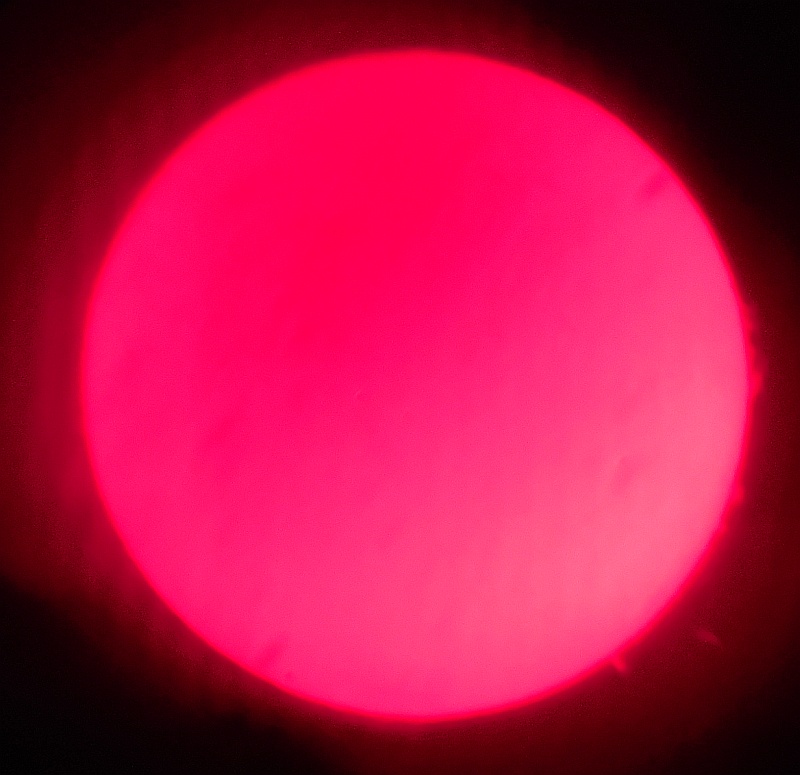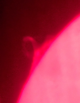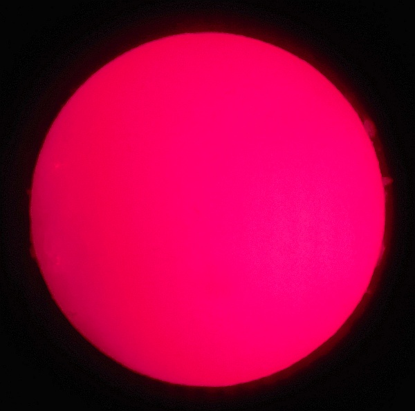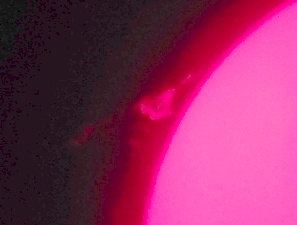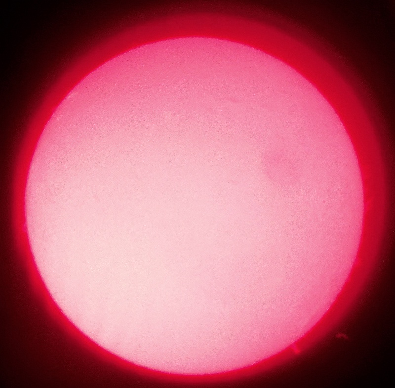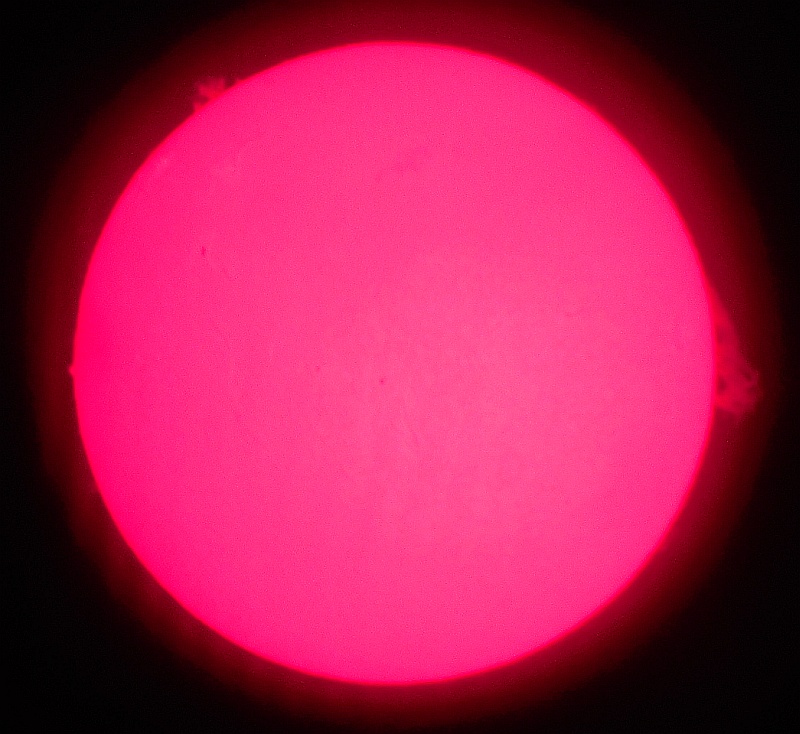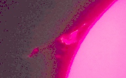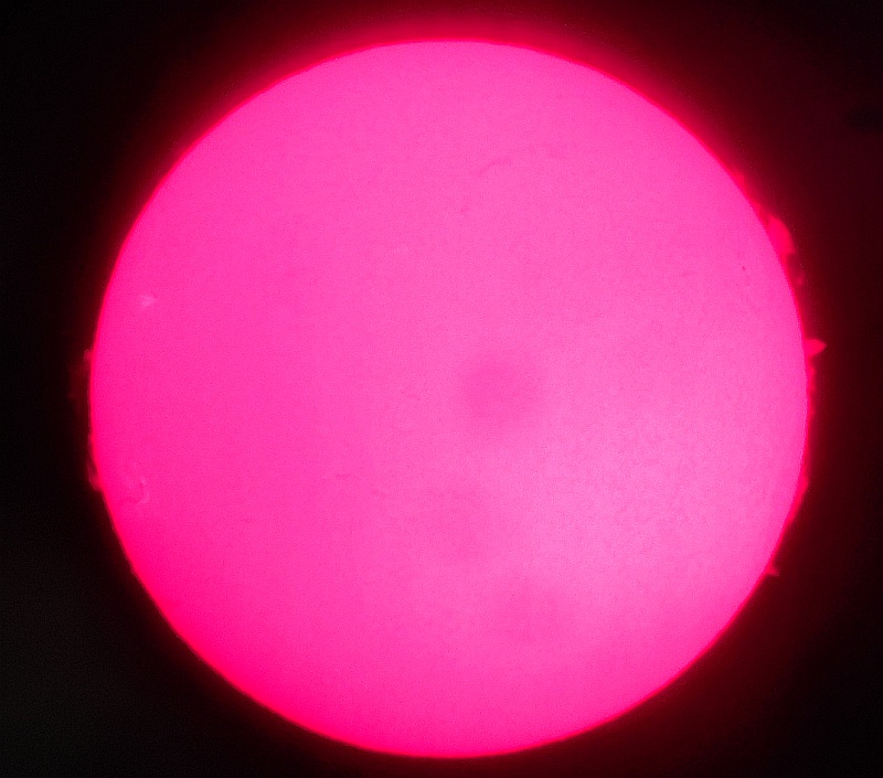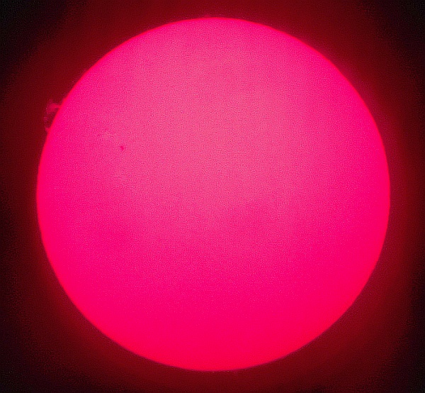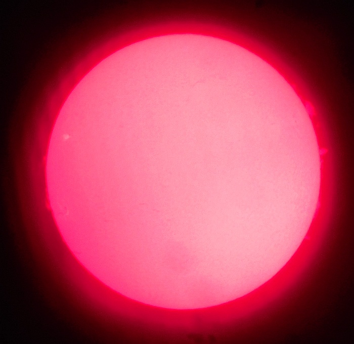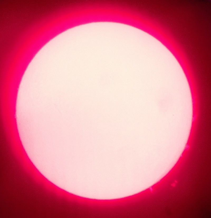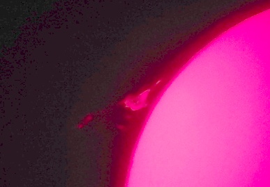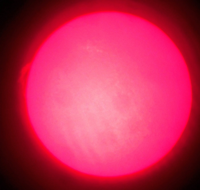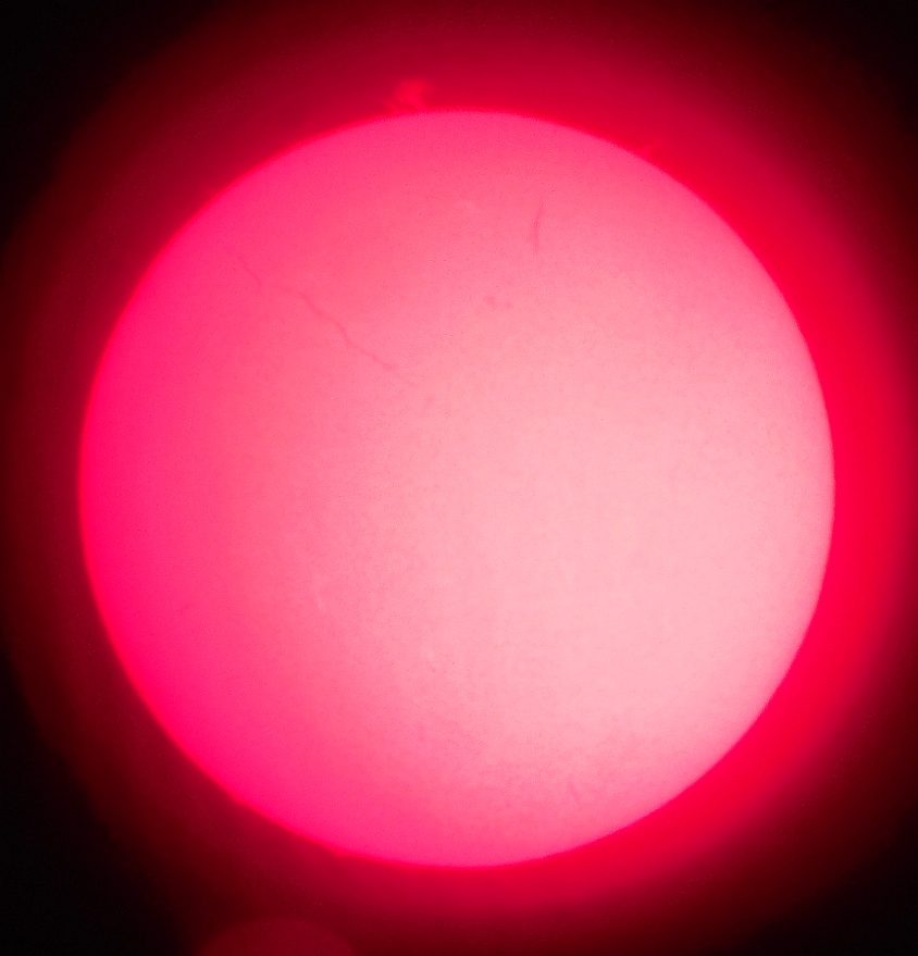 Za pokušino nekaj slik izjemne protuberance na robu Sonca - 17. sep. 2015. Posneto s H-alfa teleskopom Lunt 35 mm, zgolj z žepnim nizkocenovnim kompaktnim digitalnim fotoaparatom Nikon COOLPIX S6400 skozi okular.