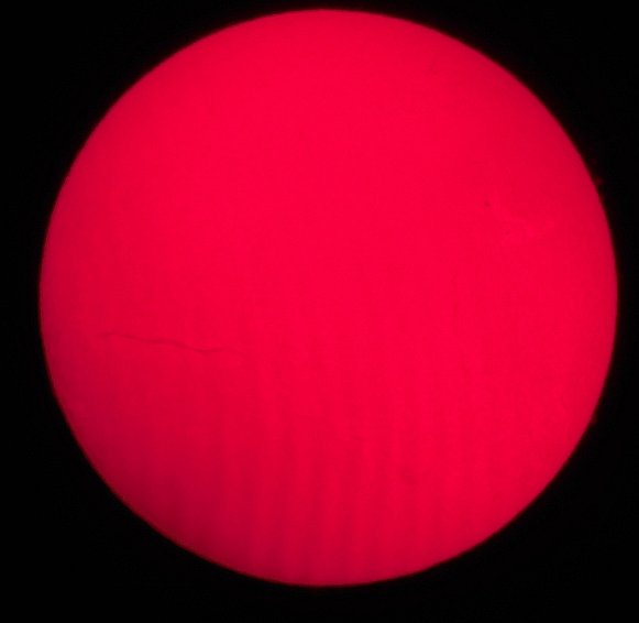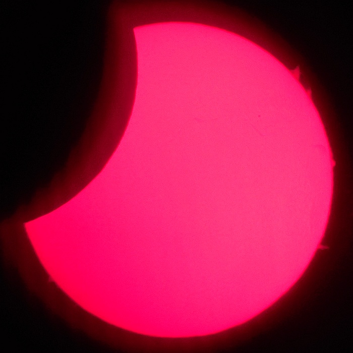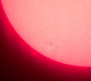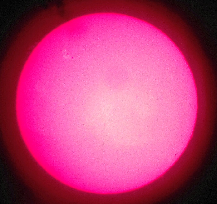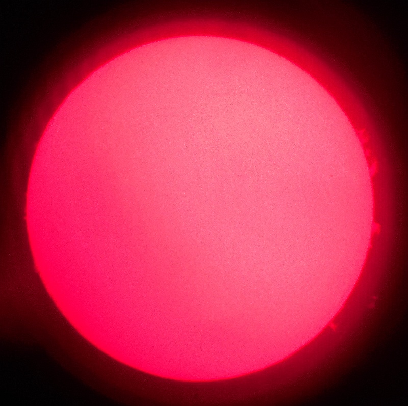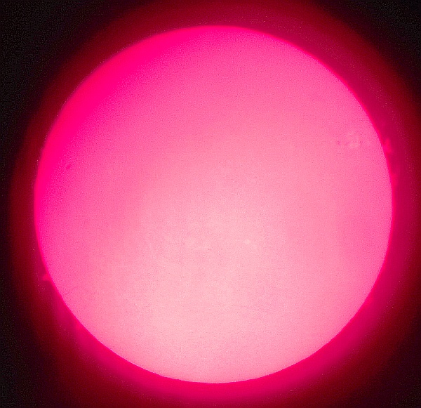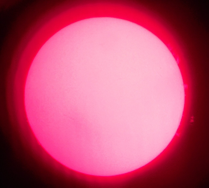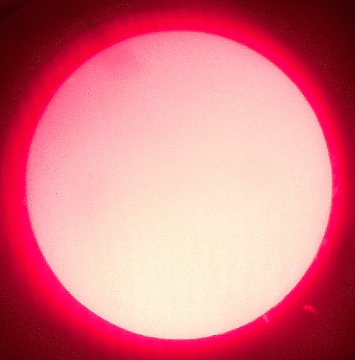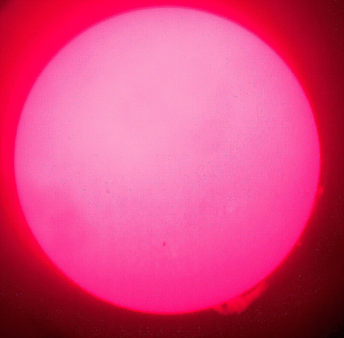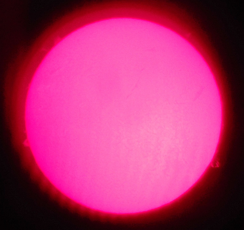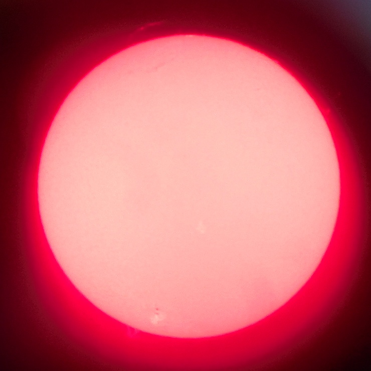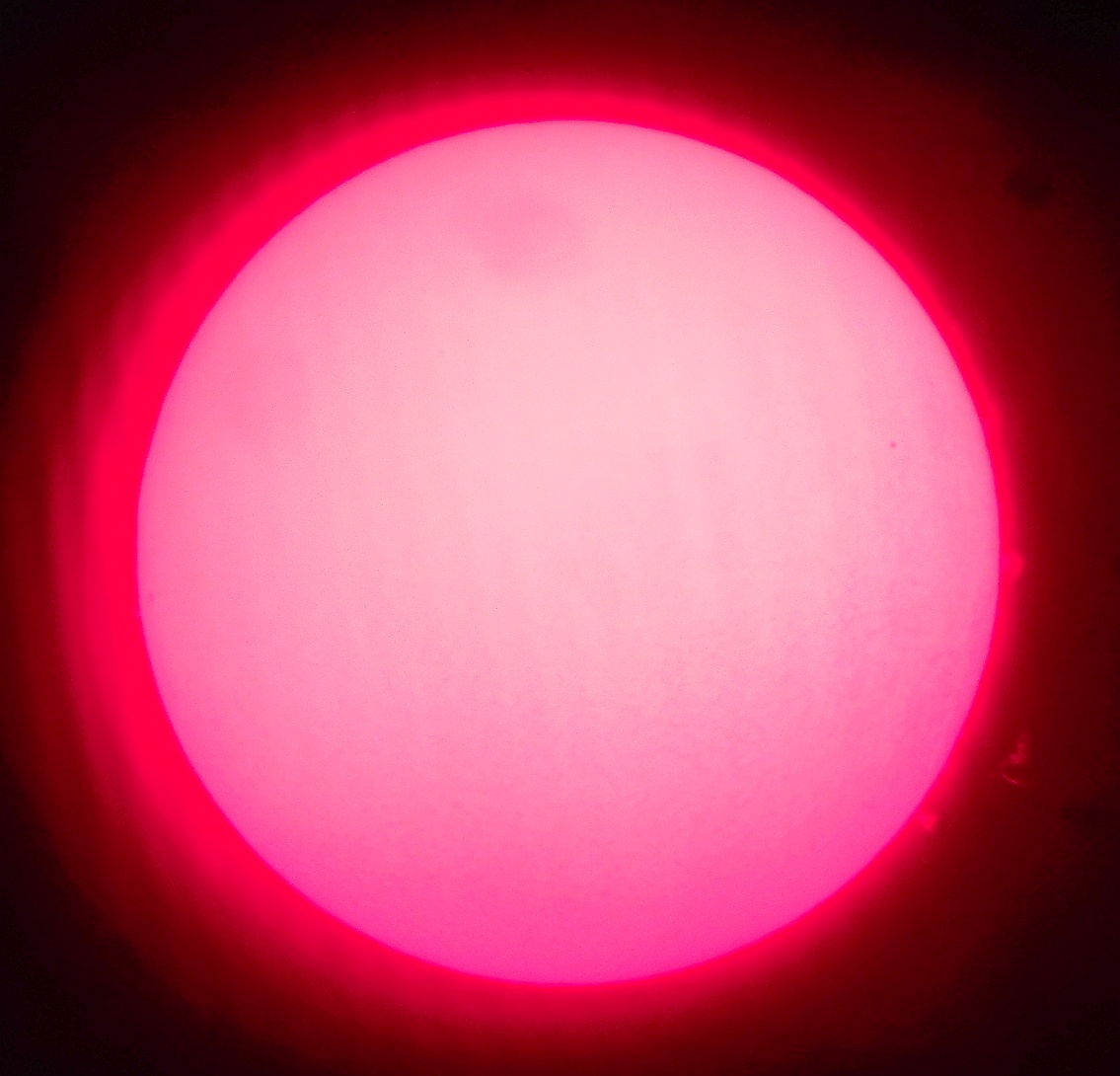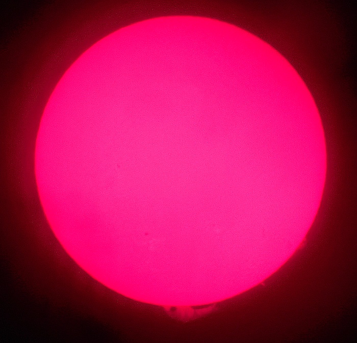 Za pokušino nekaj slik izjemne protuberance na robu Sonca - 17. sep. 2015. Posneto s H-alfa teleskopom Lunt 35 mm, zgolj z žepnim nizkocenovnim kompaktnim digitalnim fotoaparatom Nikon COOLPIX S6400 skozi okular.