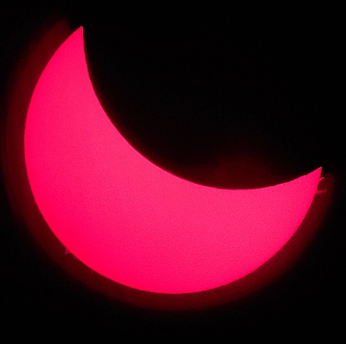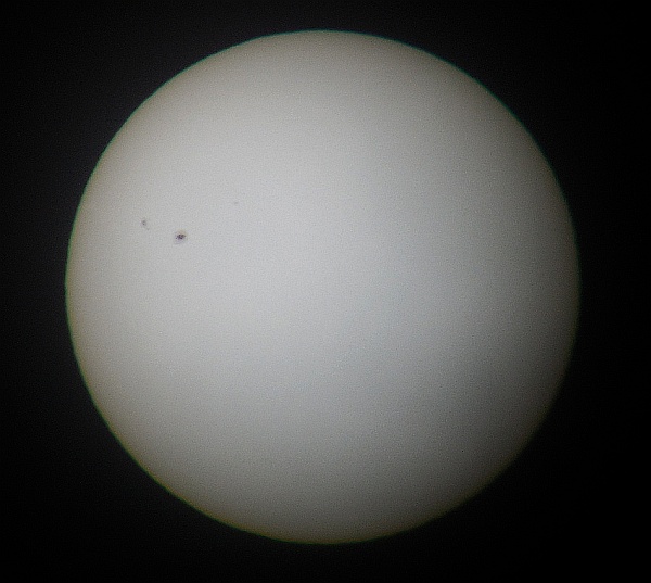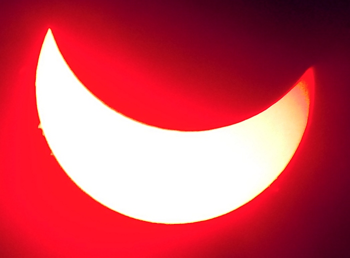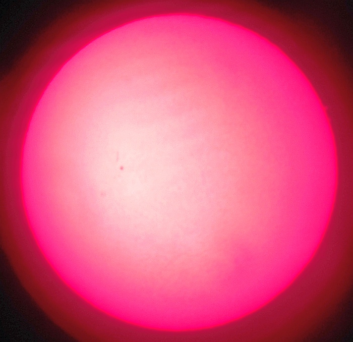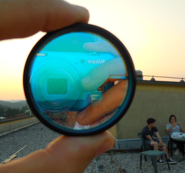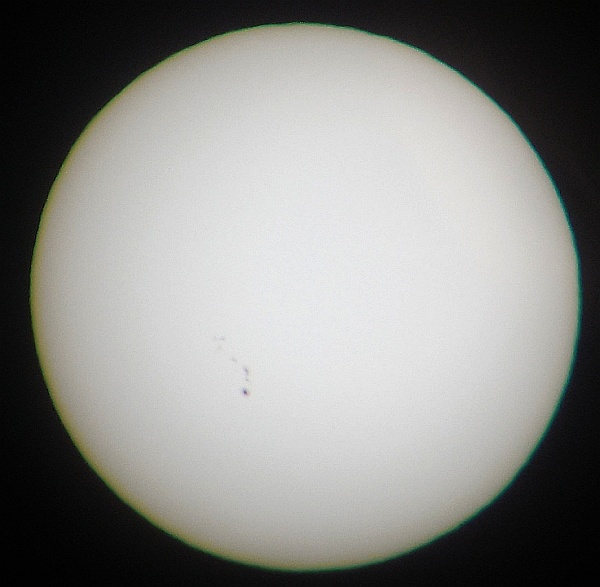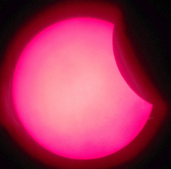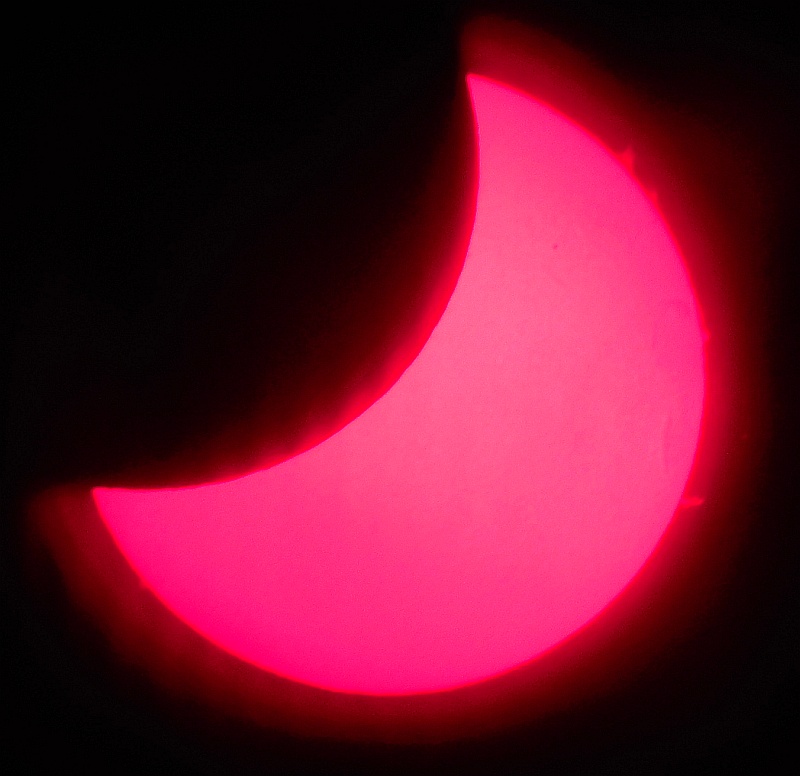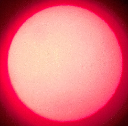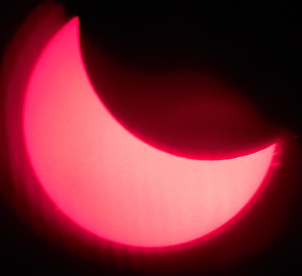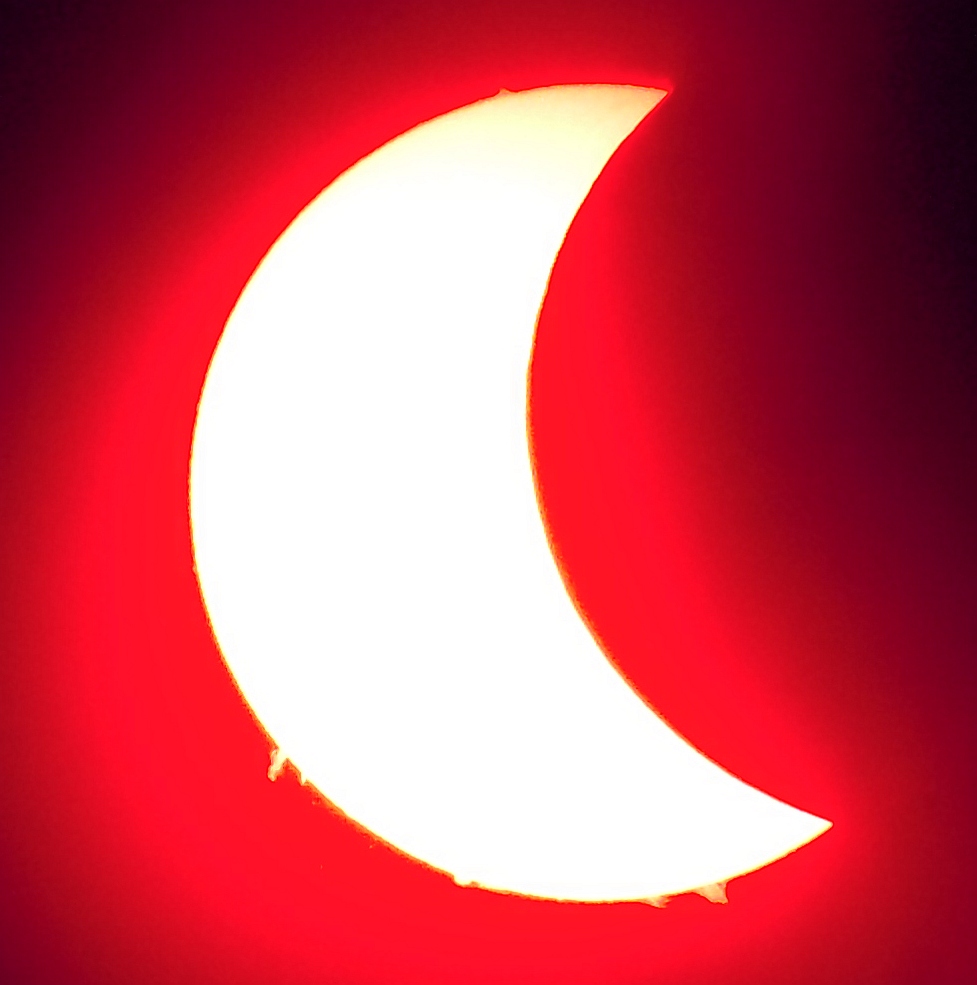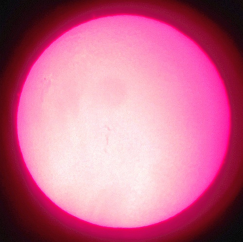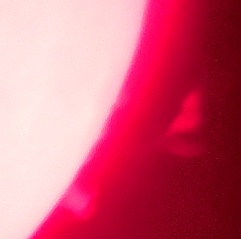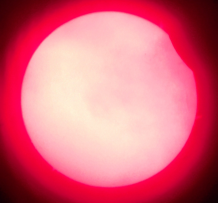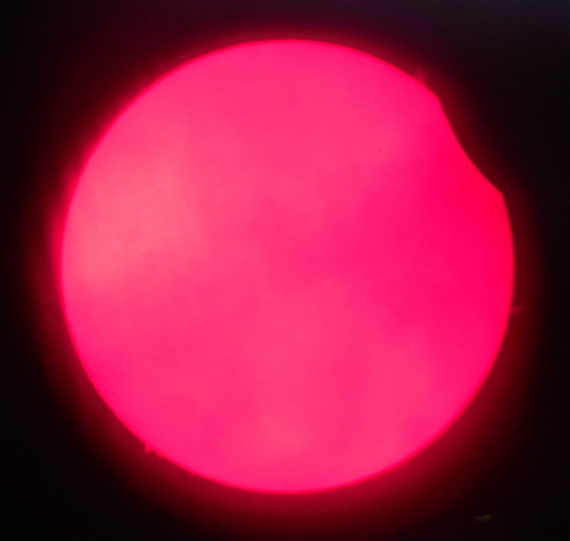 Za pokušino nekaj slik izjemne protuberance na robu Sonca - 17. sep. 2015. Posneto s H-alfa teleskopom Lunt 35 mm, zgolj z žepnim nizkocenovnim kompaktnim digitalnim fotoaparatom Nikon COOLPIX S6400 skozi okular.