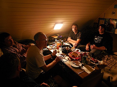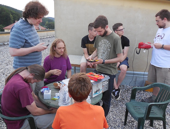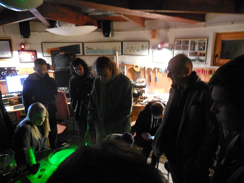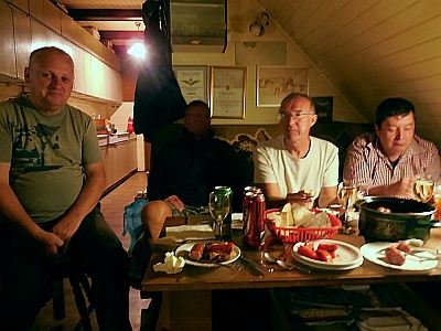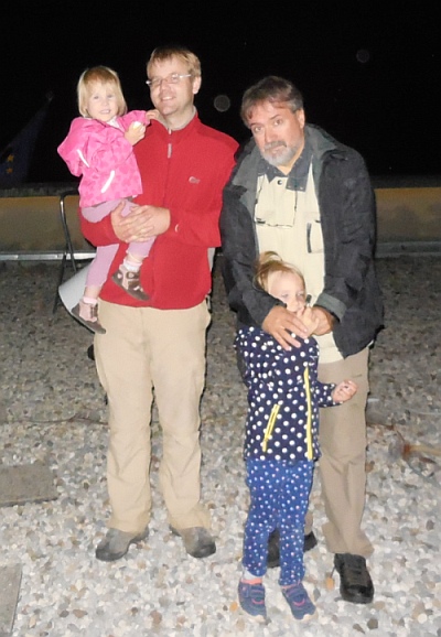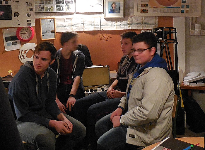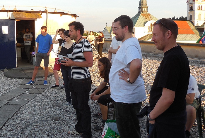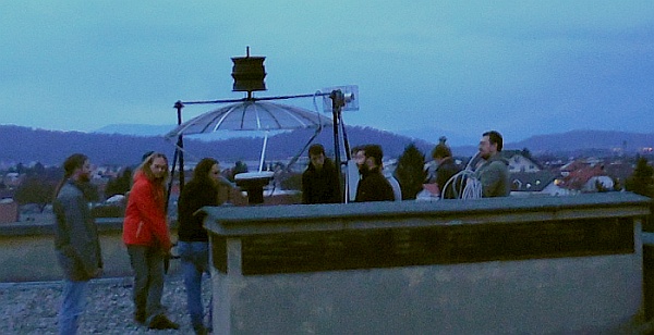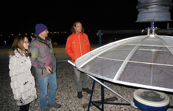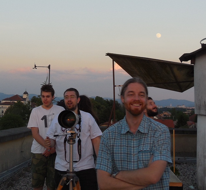 Obiskali so nas kolegi iz Urada za meteorologijo (Sektor za daljinske meritve): Tone Z. (pobudnik srečanja), Marjan D. in vzdrževalec ter konstruktor radarjev g. Rudi Vran (kot zanimivost, v mladosti je Rudi izdelal lasten teleskop, tudi zrcalo je zbrusil sam ...). To noč nas je obiskal tudi študent astronomije Andrej B., ki se bo učil osnov praktične radijske astronomije na šolskem 1,9 m-skem teleskopu, ki je prirejen za sprejemanje vodikove črte dolžine 21.1 cm.