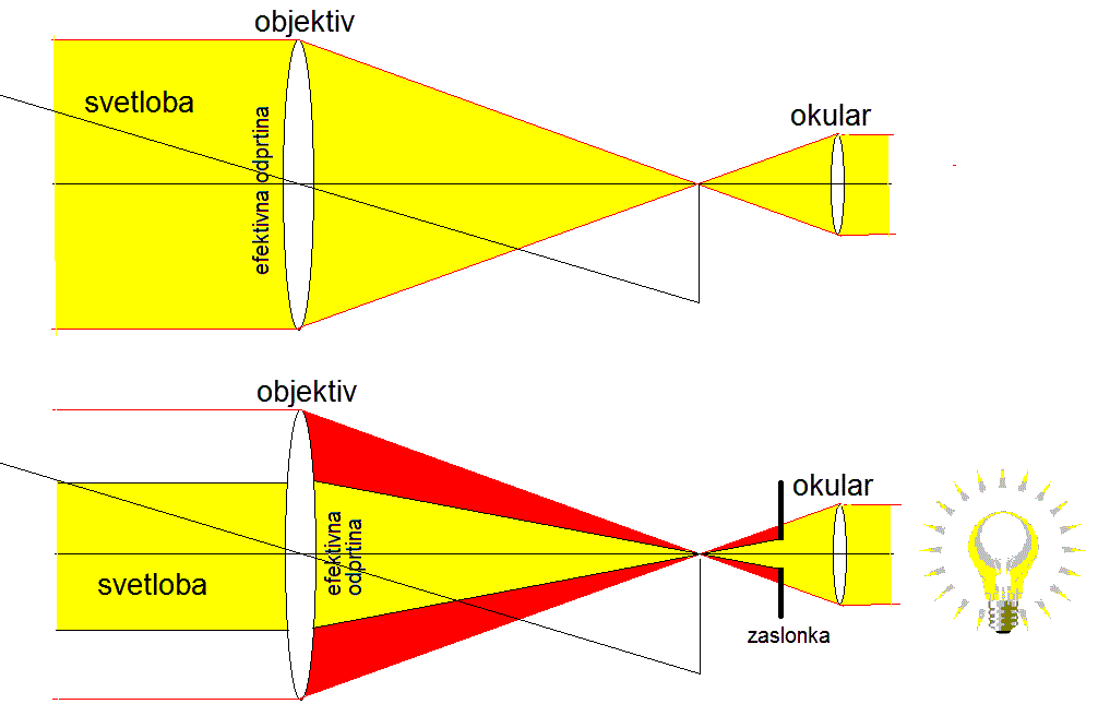 Primerjava slik galaksije M31 (navidezna velikost na nebu okrog 3°) skozi daljnogleda premera leč 50mm, povečavi 7 in 10, zorni polji okrog 6 in dobre 4 ločne stopinje.