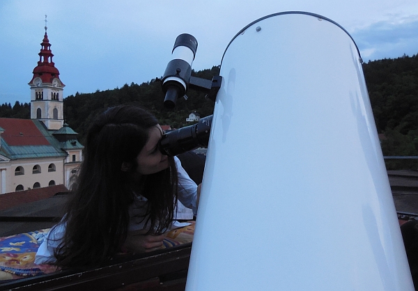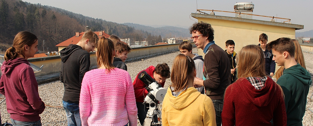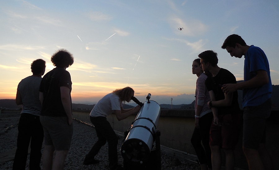 V okviru Noči raziskovalcev 2015 (25. septembra) ob 19. uri vabimo vse zainteresirane na streho Gimnazije Šentvid. Skozi teleskop si boste lahko ogledali oddaljene predele naše galaksije in še dlje – vsaj do sosednje galaksije, velike galaksije v ozvezdju Andromede (planet Saturn je viden do 20h). Držimo pesti za lepo vreme!
