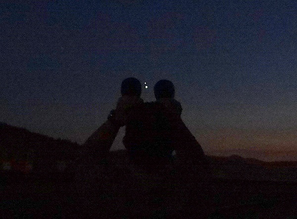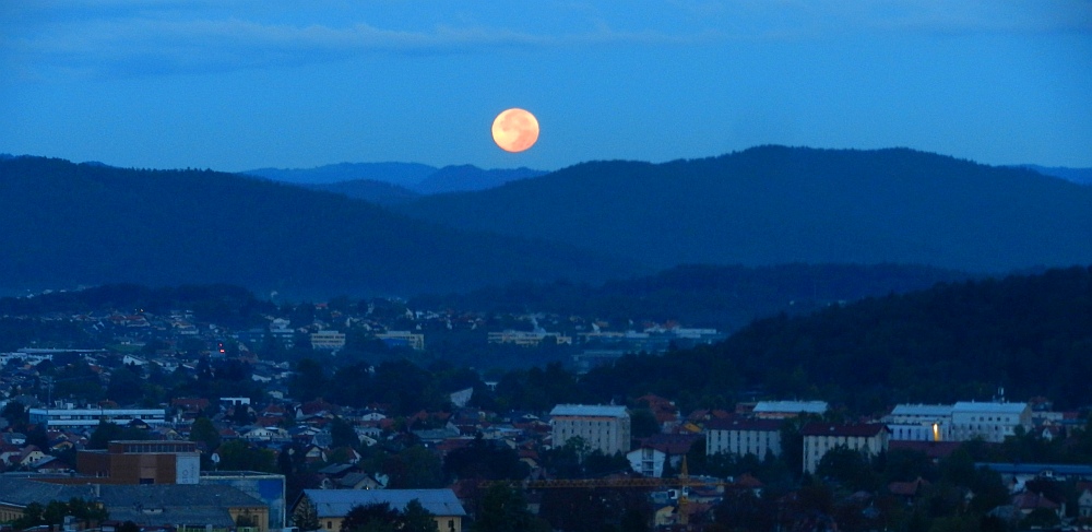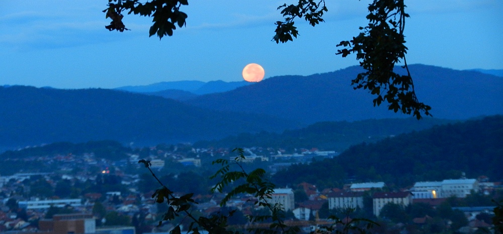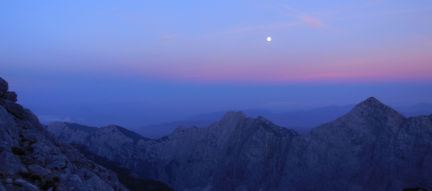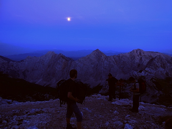 Luna nad gorami kot znak upanja - že v dolini smo razmišljali, da nam bo v primeru pozne ure na poti pomagala svetloba Lune.