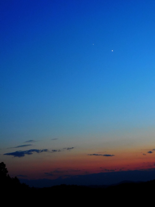 Praktično smo bili dan pred polno Luno, tako da smo si (iz ploščadi heliodroma) ogledali zgolj Saturna, ki se je ob 20:30 že kar bližal Malemu Triglavu (bil je spokojno miren, oster kot britev - povečavi 148x in 217x) in nekaj dvozvezdij (odlična razločljivost dvozvedij, višina 2515 m ima res svoje prednosti - manj motenj). Na drugi strani, ob Velikem Triglavu pa je v biserni podobi svetil Arktur. Tako je bilo pogorje Triglava na eni strani okrašeno z Volarjem, na drugi (ob Malem Triglavu) pa s Škorpijonom in Saturnom. Pogled na Mali in Veliki Triglav je bil prav čaroben, saj so žarki polne lune tvorili izjemne sence - vzorce na skalnih stenah očaka.