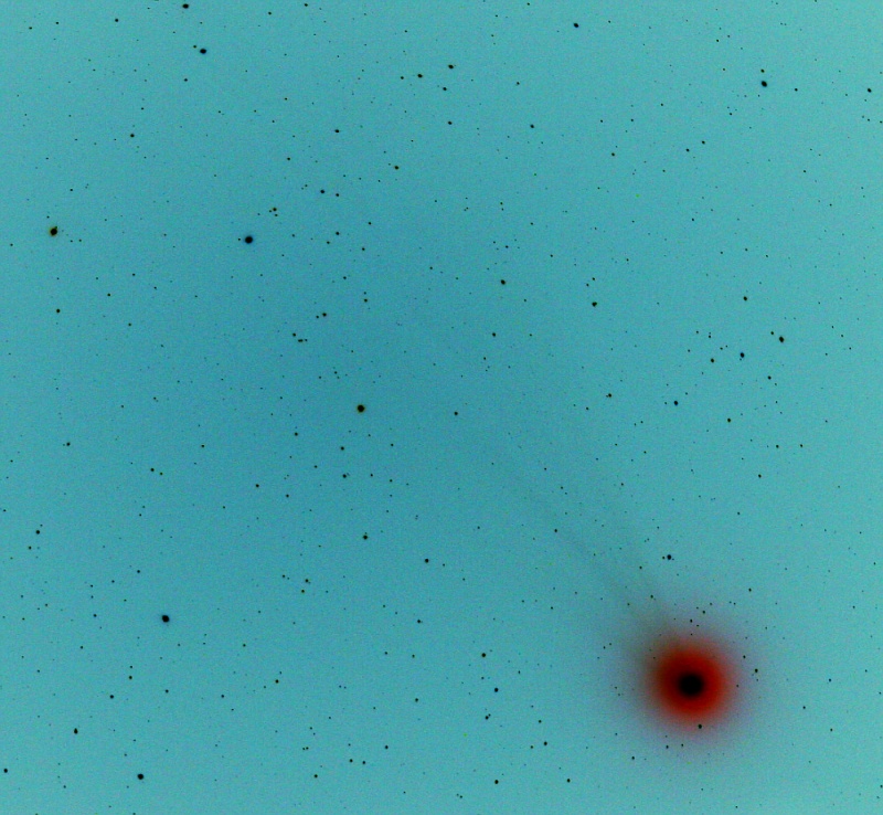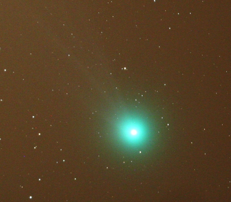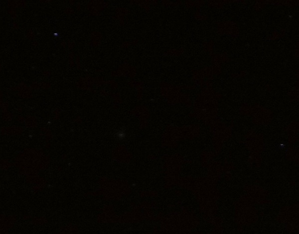 Približno tako pa smo videli komet Lovejoy (C/2014 Q2) v teleskopu - ozračje se namreč ni povsem zbistrilo, tukaj sta še problema preosvetljene Ljubljanje in prisotnosti Lune.