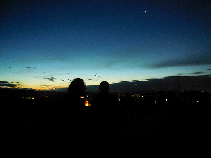 Bila je izjemna noč in obiskalo nas je, poleg dijakov, kar nekaj zunanjih opazovalcev - od dveh let naprej. Saturn je bil pri povečavah nad 150x še zmeraj izjemno miren in jasen - Lunin prvi krajec pa se je bogato razkazoval na zahodnem nebu. Rimska cesat je bila to noč očitna. Messierjevi objekti so bili prav svetli, enostavno vidni. Uspelo nam je (kar nismo verjeli, da nam bo) ujeti planetarno meglico Heliks - a o tem pozneje ...