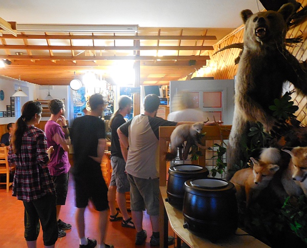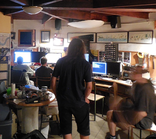 Sodelavec Marjan na meteorološki postaji Kredarica izpolnjuje dnevnik opazovanj. Prostori so (pre)skromni (sliki spodaj) - a prijetni zaradi dobrih ljudi. Zelo zanimiv pogovor (recimo, da so opazovalci hkrati prvi reševalci poškodovancev - in tega jim nihče ne prizna ..., o nedodelanih kriterijih za priznanja opazovalcem, o tujih gorstvih, ljudstvih, o astronomiji, ...) je tekel do ene ure zjutraj. Večina na višini 2500 m tako zelo slabo spi, a počitek je zalegel toliko, da smo si nabrali moči za nov dan in za 8 ur dolgo pot na Triglav in v dolino. Mnogi gorniki so že ponoči ali pred vzhodom sonca, odromali na vrh Triglava.