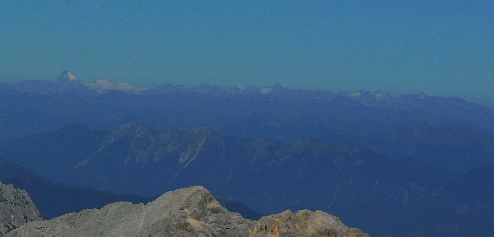 Levo zadaj je Veliki Klek (Grossglockner: 3798 m, smer SZ).