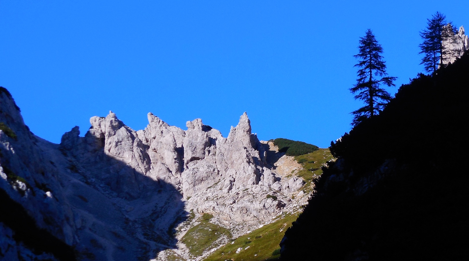 Prva huda strmina (zlizane skale) iz Kredarice na Mali triglav je za nami.