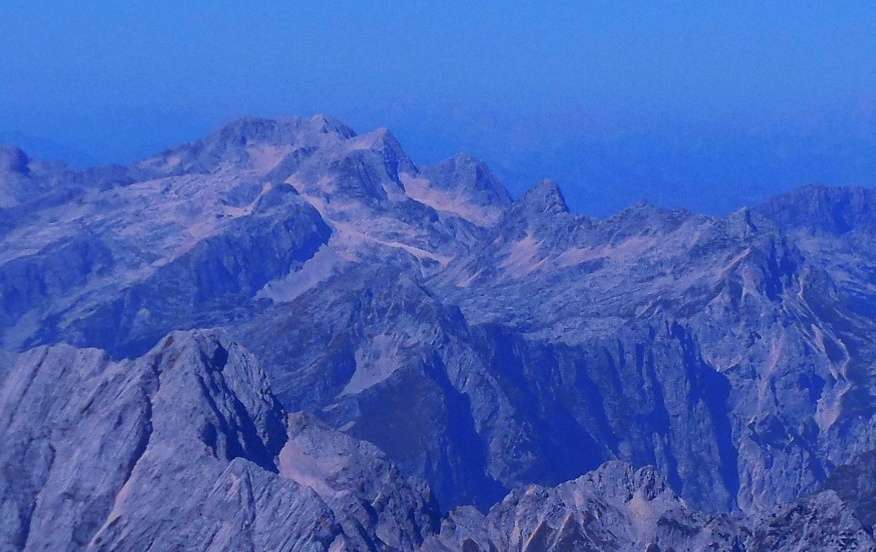 Pogled iz vrha Triglava na Kredarico z okolico.