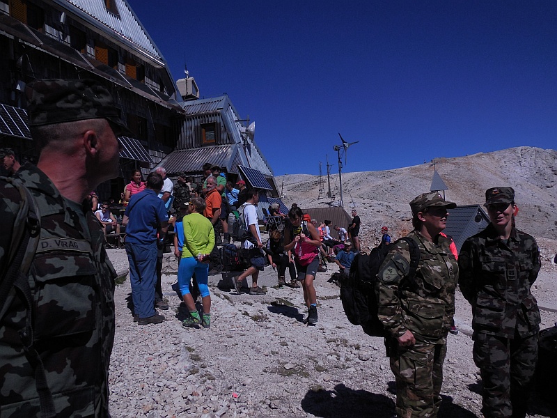 Proslava ob 60-i obletnici meteoroloških meritev na Kredarici. Ravno, ko smo se spuščali iz Malega Triglava, je Orketser Slovenske vojske zaigral triglavsko Aljaževo himno - "Oj, Triglav moj dom" - take poti iz Triglava zlepa ne doživiš.