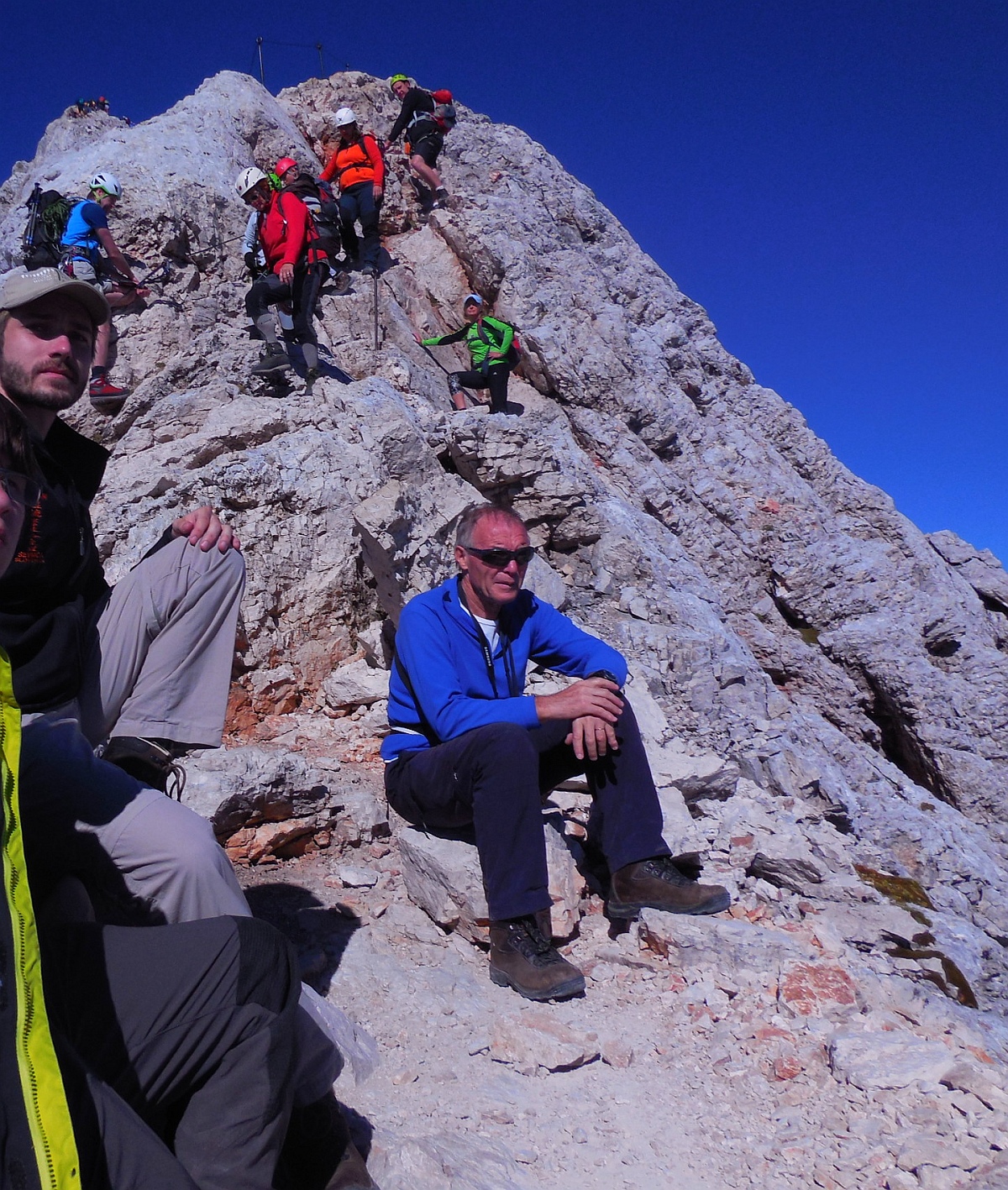 Na poti smo morali zaradi gneče večkrat čakati na sestopajoče gornike.