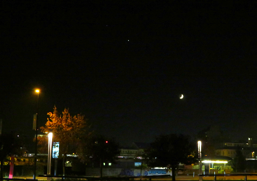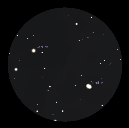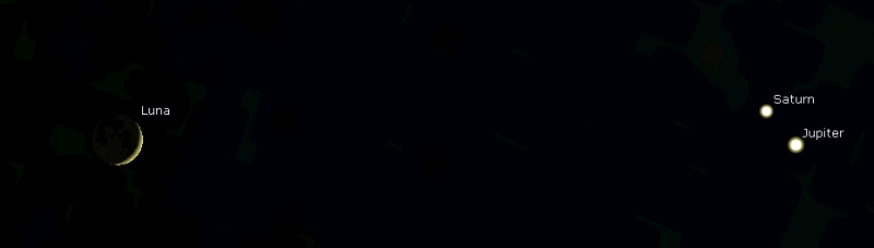 ![]() Jupiter in Saturn 16. dec. 2020, 5 dni pred veliko konjunkcijo. |