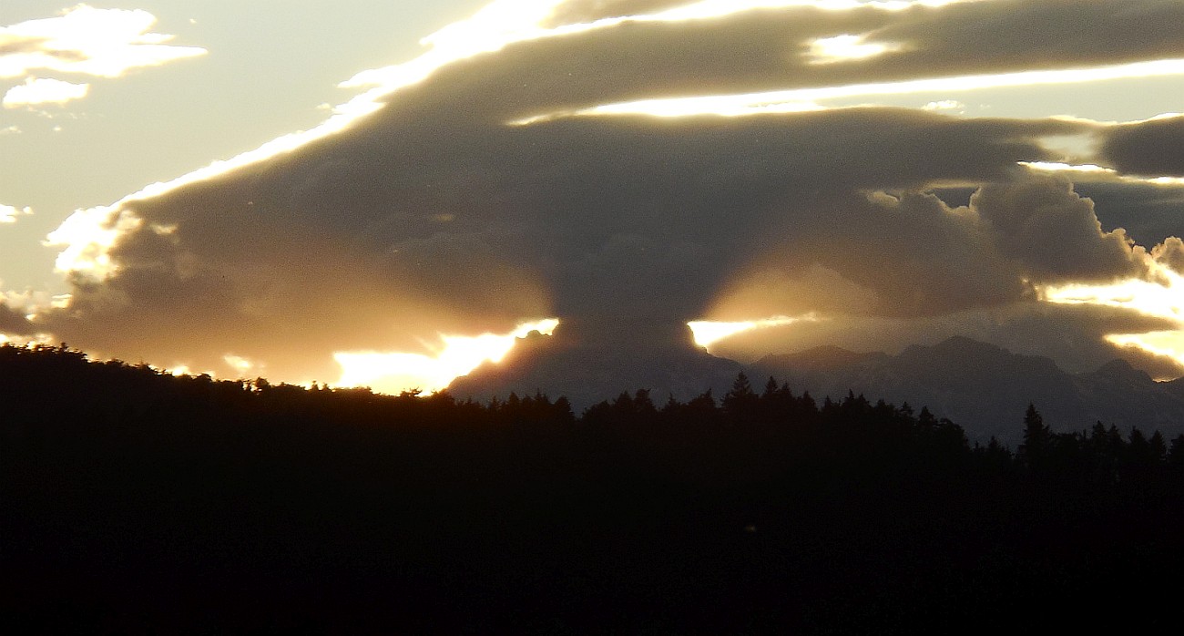 Rimska cesta nad parkom Yellowstone Avtorstvo slike & avtorske pravice: Lori Jacobs Pojasnilo: Rimska cesta ni nastala iz izhlapevajočega jezera. Bazen živahne modre vode s premerom okoli 10 metrov, je znan kot izvir Silex in se nahaja v Nacionalnem parku Yellowstone, v državi Wyoming, ZDA. Iz izvira se dviga para, ki jo segreva magma globoko pod površjem, znana kot Yellowstonska vroča točka. Para zamegljuje sliko Venere, ki je zato videti nenavadno velika. Nepovezano daleč v ozadju vzhaja osrednji pas naše Galaksije, pas, ki je osvetljen od milijard zvezd. Prikazana slika je panorama, sestavljena iz 3 slik in je bila posneta prejšnjega avgusta. Če bo Yellowstonska vroča točka povzročila ponoven izbruh supervulkana, kot ga je pred 640.000 leti, bi lahko bil prizadet velik del Severne Amerike. VIR: https://apod.fmf.uni-lj.si/ap200129.html |