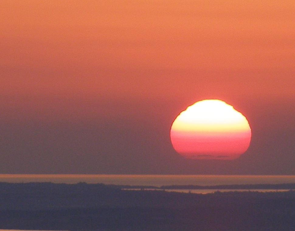 Zahod Sonca za Polhograjskimi Dolomiti, maj 2001. Posneto skozi sončni filter v