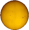 Zahod Sonca za Polhograjskimi Dolomiti, maj 2001. Posneto skozi sončni filter v