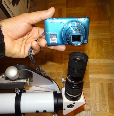 Seveda si lahko kupite nastavek za pritrditev aparata na okular ali celo kak boljši
