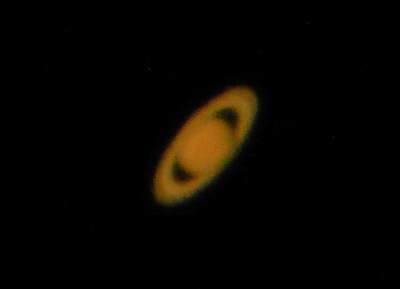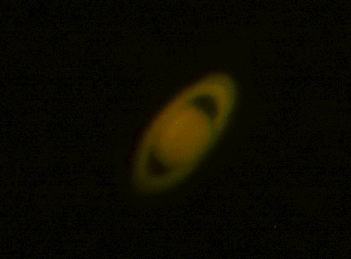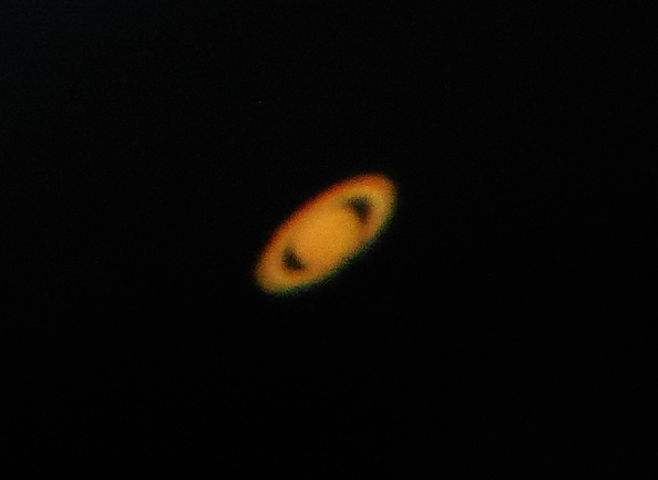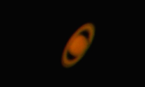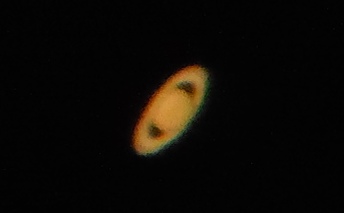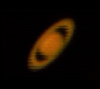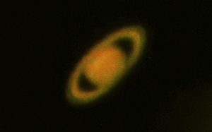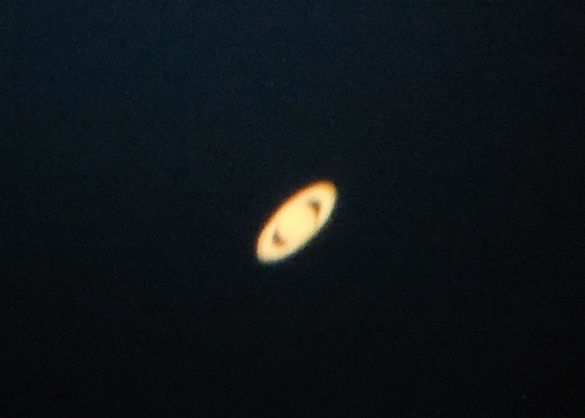 Saturn pri povečavah 170X in 300X (skozi okular in še nekaj zooma), 1. julij 2015.