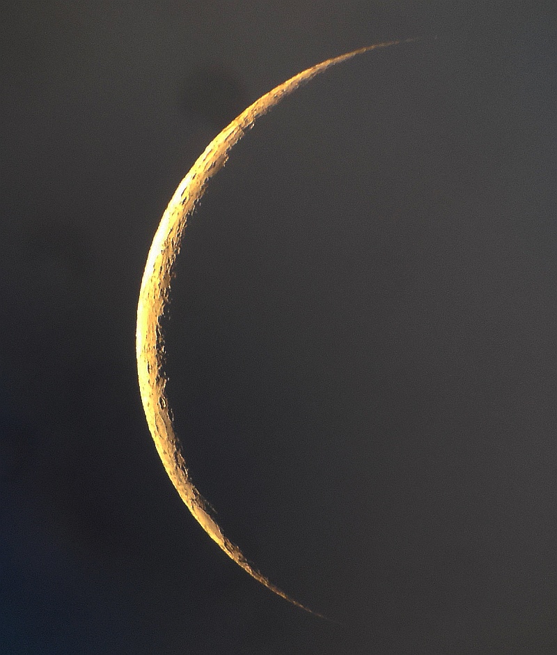 Mlada Luna 20. april 2015. Kraterji se lepo prepoznajo.
