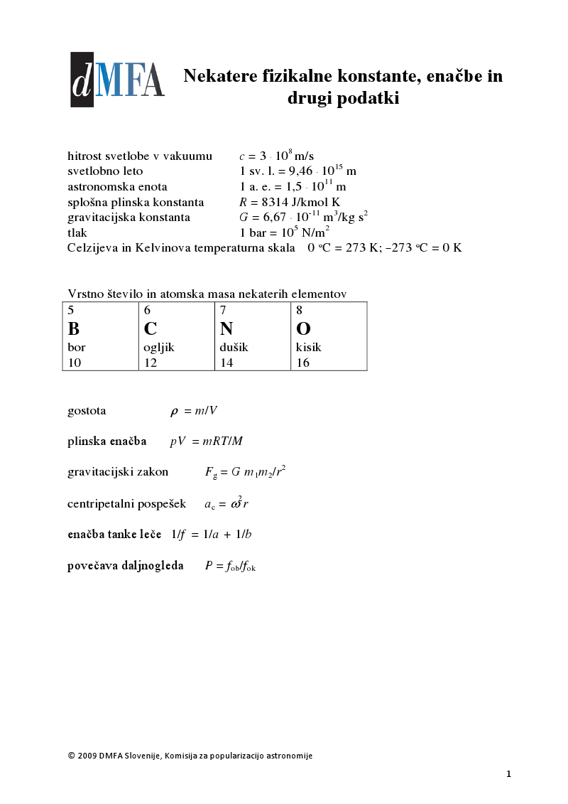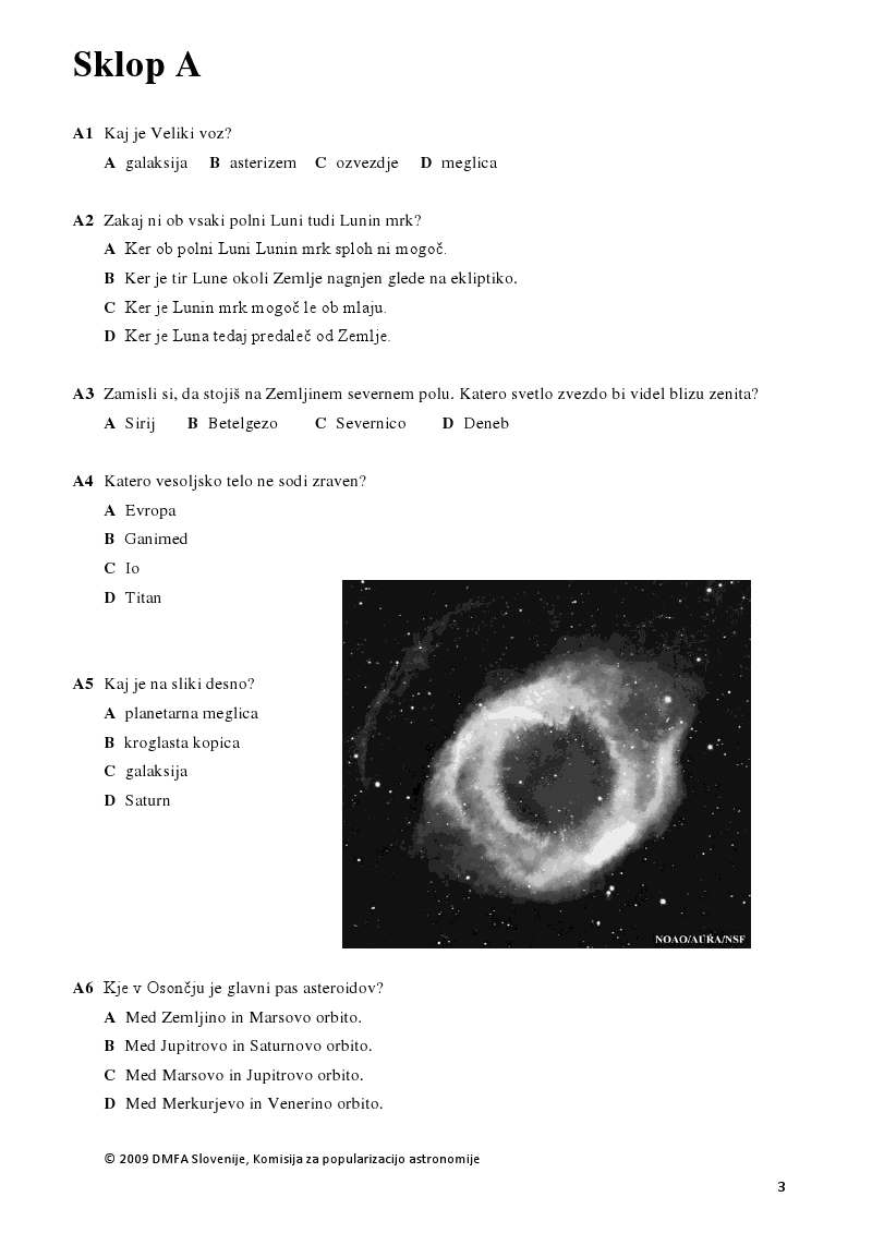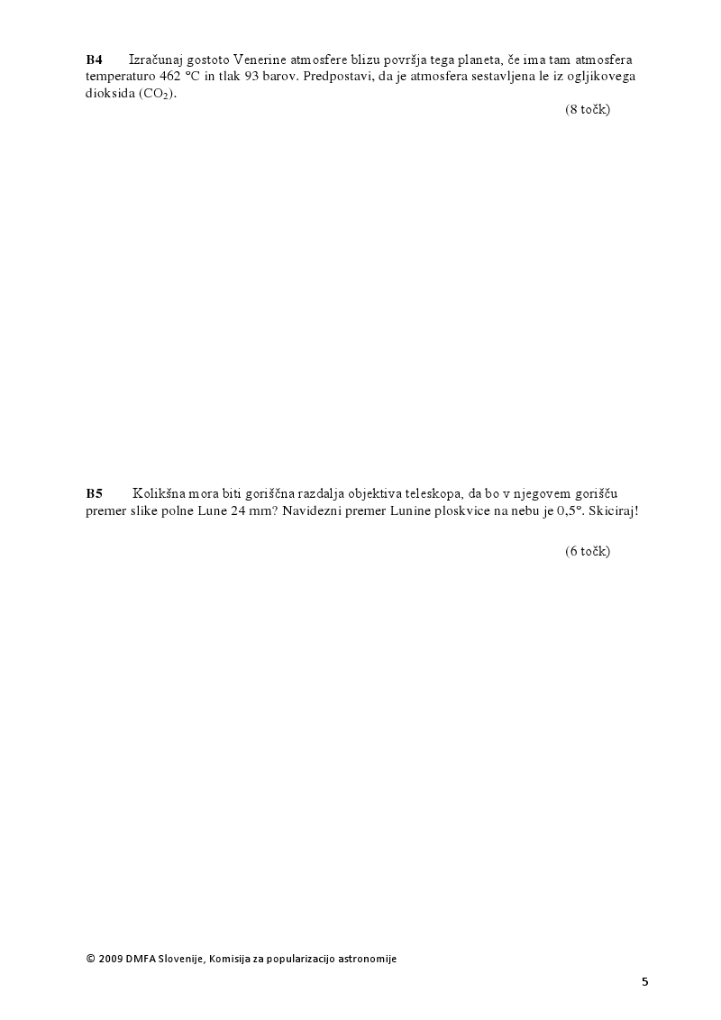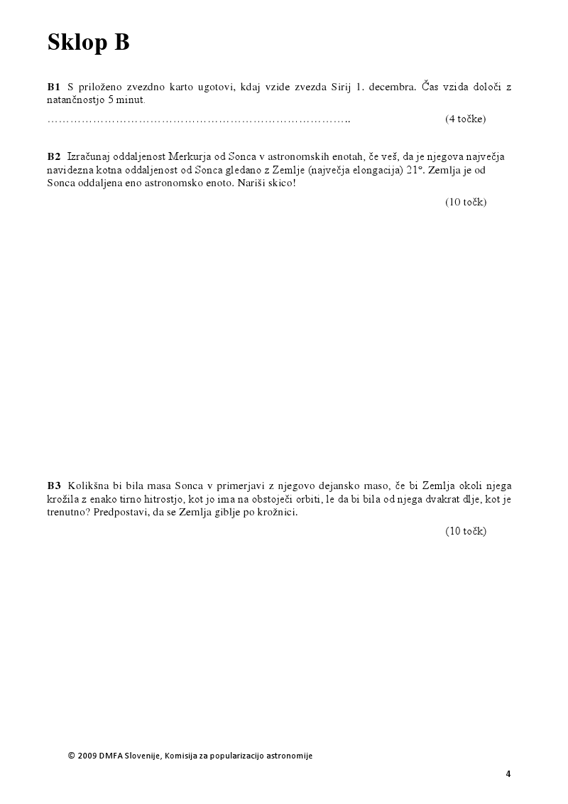 Naloge in rešitve iz astronomije 2009 - šolsko tekmovanje, srednje šole