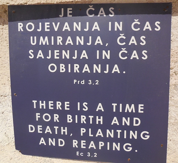 ![]() Je čas rojevanja in čas umiranja, čas sejanja in čas obiranja. |