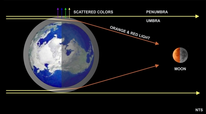 krvava Luna, iz istega razloga, kot so na Zemlji sončni zahodi rdeči: