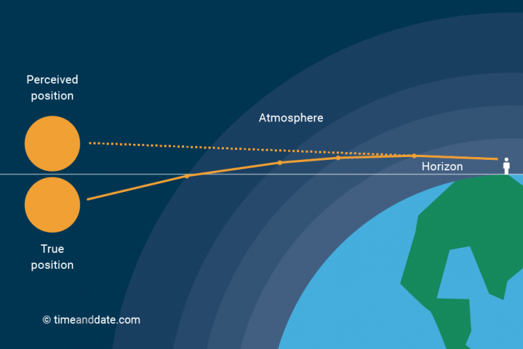 še zmeraj doseže kar nekaj svetlobe, ki se manj lomi na višjih plasteh