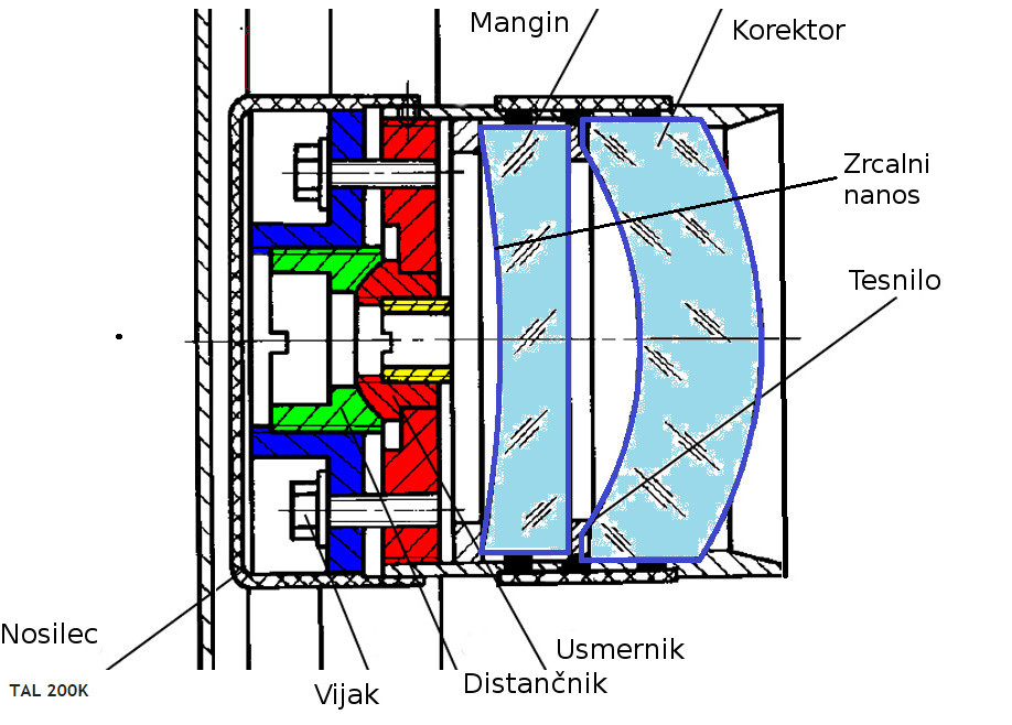 Slika 1. Prerez skozi enoto sekundarnega zrcala.
