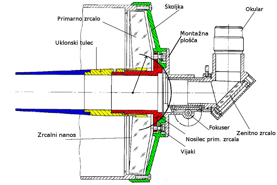 Slika 7. Približno pravokotno na stensko zrcalo poravnan teleskop.