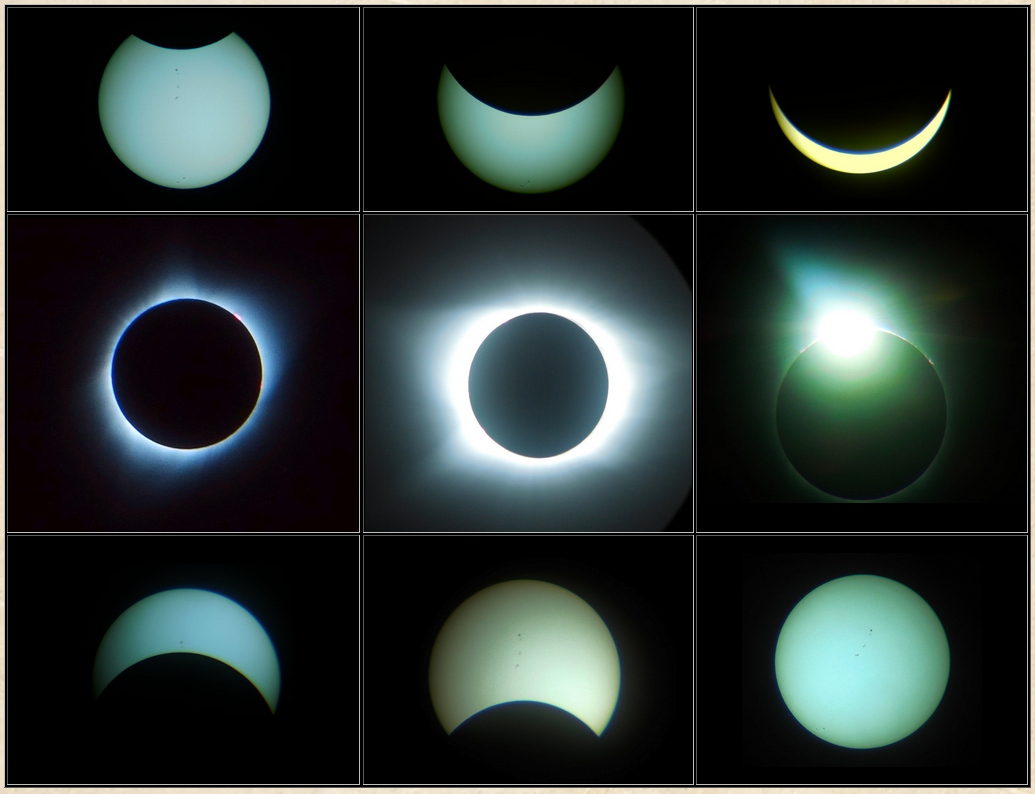 Faze Sončevega mrka (21. avg. 2017, Casper), kot jih je ujela ekipa iz
