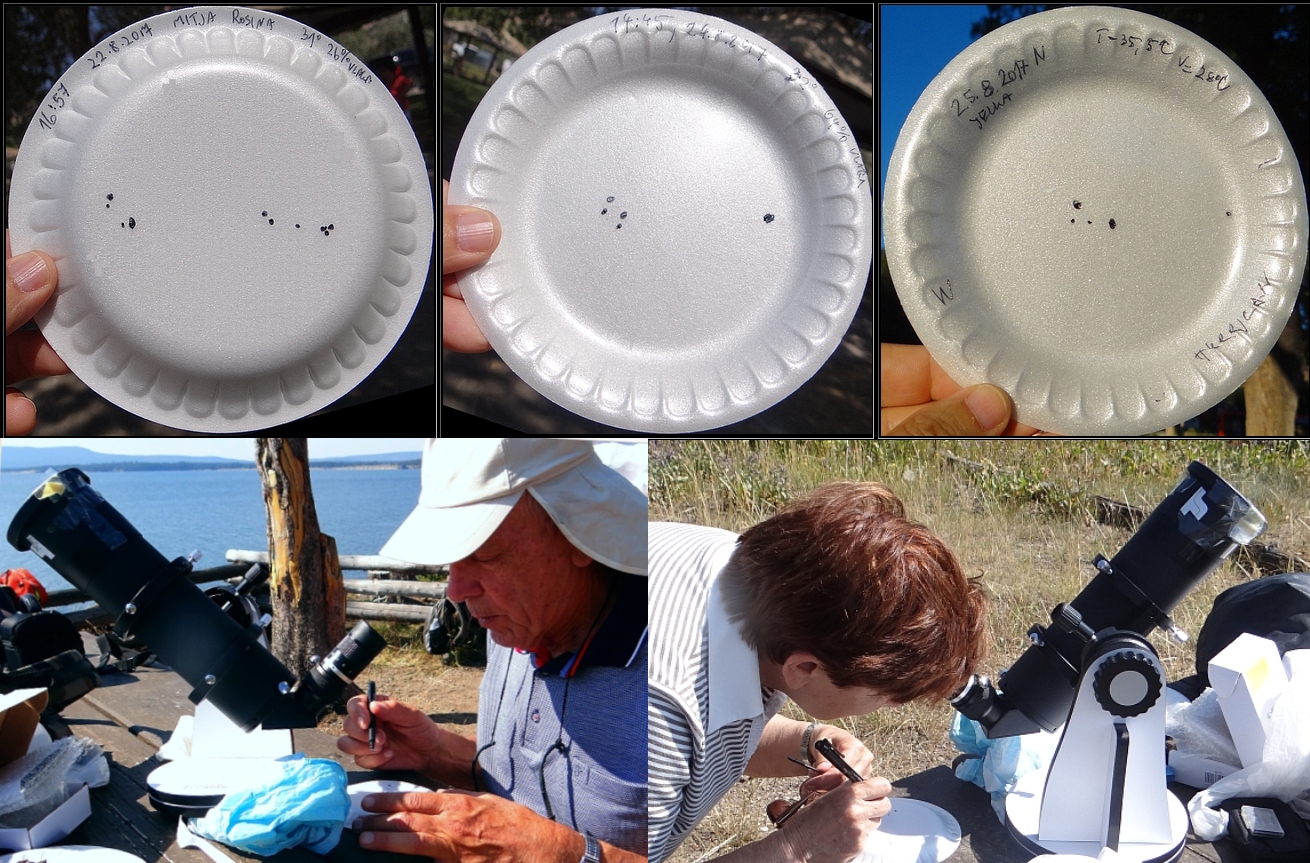 Naš tabor za opazovanje mrka smo postavili na prostorni vzpetinici (savanski planotici) nad nakupovalnim centrom v predmestju Casperja. Tam je ležalo nekaj kamenja, skal, ki so nam prišle še kako prav za postavitev opreme, odložitev oblek, pijače. Imeli smo dovolj časa in komoditete za mirno pripravo na mrk, za kavo, toaleto, nakup majic s podobo mrka in kakšnega stola z marelo za uživanje. Jutro je bilo jasno, na nadmorski višini 1600 m smo se vsekakor zaščitili s sončno kremo, a tokrat zares z velikim veseljem – samo da sije. Najprej smo testirali naša očala za opazovanje Sončevega mrka (vsi smo pogledali proti Soncu in tako preverili korektnost očal – da ni kakšne poškodbe, in da smo se hkrati navadili na opazovanje Sonca – polovica je namreč to počela prvič – to veliko pove o našem šolskem sistemu). Nakar smo si še s teleskopom, z novim filtrom, s povečavami nekje od 30x do 50x, ogledali površino Sonca pred mrkom. Bili smo navdušeni, saj je bilo Sonce dokaj bogato pokrito s pegami, kar je dobro za spremljanje dinamike mrka. Refraktorček z Amicijevo prizmo, torej s pokončno sliko, za opazovanje v skupini, sploh ni slaba rešitev. Razlaga, kaj je zgoraj, kaj spodaj, levo desno, itn, je v takih primerih zguba časa in odvračanje pozornosti od bistva.