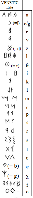 Venetska pisava (levo) - različica iz Reitije v mestu Este.