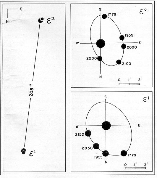 imenovano Epsilon-1, sestavlja par zvezd 4.7 in 5.8 magnitude, razmaknjeni pa sta 2.6 ločne sekunde. Južni par (Epsilon-2) sestavljata