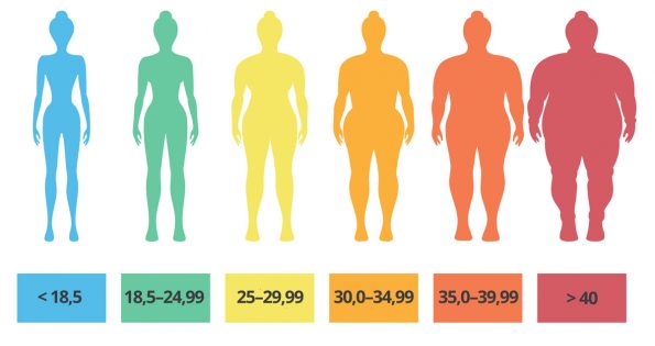 Normalna telesna masa 18,5–25,0 normalna telesna masa