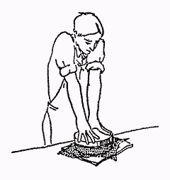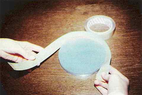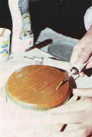 Steklo, ki ga bomo rezali, moramo z zgornje in s spodnje strani zaščititi s kakšnim drugim, dva milimetra debelim steklom. Prilepili ga bomo tako, da vsa stekla pogrejemo nad plamenom. Pri tem jih držimo z leseno ščipalko za perilo. Pazimo tudi, da jih ne segrejemo prehitro, zato jih držimo pet do deset centimetrov nad plamenom. Ko so dovolj segreta, damo na enega košček kolofonije in počakamo, da se razlije. Temperatura naj ne bi presegala sto stopinj. Spojimo jih na zloženi suhi krpi, jih dobro stisnemo in pustimo, da se ohlade.
