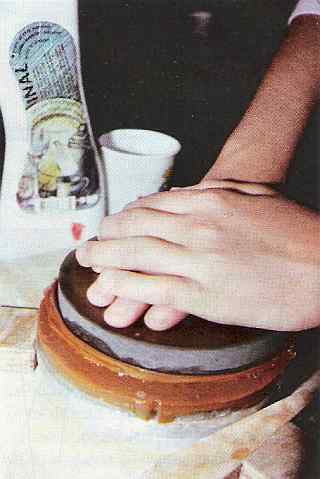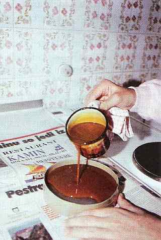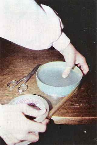 Bodoče ogledalo bomo pod kotom petinštirideset stopinj vložili v leseno ali kakšno drugo škatlo ter jo zalili s tekočim mavcem. Pazite le, da kot ostane ves čas enak. Ko bo izvrtano, bo samo padlo ven in zlahka ga bomo očistili.
