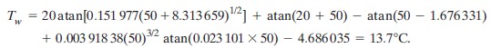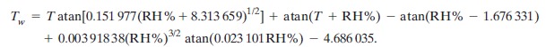 Še primer empirične enačbe za izračun Tem_mokri (Tw) iz vlage in Tem_suhega