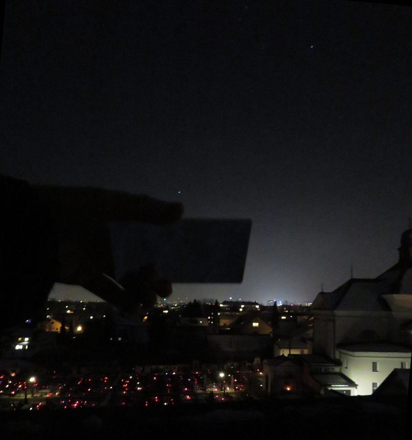 SQM (Sky Quality Meter ) je pokazal sij neba okrog 18 mag/arc-sec2